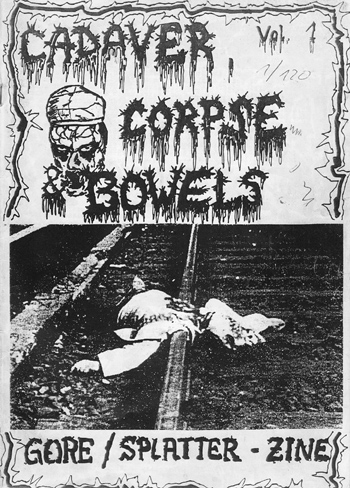 Vielen Dank, lieber Thor, für Dein Interesse und das Interview! Es ist mir eine große Ehre, in Deinem Fanzine Mørkeskye und auf Musikreviews.de Erwähnung zu finden! In der Tat war mein Fanzine Cadaver, Corpse & Bowels mein erster literarischer Output. Es war damals 1990 eine tolle und spannende, aber auch gefährliche Zeit. Eine Zeit voller Aufbruch, neuer Ideen und Schöpfungen. Nachdem in der DDR jede eigene private Veröffentlichung verboten war und man mit der Stasi in Konflikt kam, war es für mich eine Offenbarung, ein eigenes Zine veröffentlichen zu können. Das war natürlich nicht so einfach wie heute am Computer. Ich musste alle Seiten zusammenkleben, die Interviews auf der Schreibmaschine tippen und dann auf die Originale kleben, die ich dann abends in der Uni heimlich kopierte und vervielfältigte. Dann schleppte ich die kopierten Seiten nach Hause und klammerte sie. Die Qualität litt sehr darunter, aber das war egal! Weil es auch noch kein Internet gab und ich nur dürftige Fotos der Bands hatte, die ich interviewte oder die Cover der Demos auch schon zigmal kopiert waren, besorgte ich mir ein Buch, was zur Musik passende Abbildungen hatte. Das Buch hieß "Gerichtliche Medizin" von Wolfgang Dürwald. Ein Lehrbuch für Studenten der Medizin und Pathologie, erschienen 1990 in Leipzig. Darin fand ich u.a. einen original Totenschein, einen Autopsie-Antrag, massig Fotos von Unfallopfern, Selbstmördern und Mordopfern und allem, was das Splatter-Herz erfreut! Damit konnte ich meine Texte passend illustrieren. Es waren nur Bands im Death Metal, Grindcore und Noisecore vertreten. So u.a. auch Mayhem, die sich damals noch selbst im Death Metal verorteten. Von jeder der vier Ausgaben erschienen um die 400 Exemplare, alles handnummeriert. Ich traf einen Nerv, denn die Dinger gingen weg wie warme Semmeln. So lernte ich Euronymous und Mayhem kennen und organisierte dann die drei Konzerte.