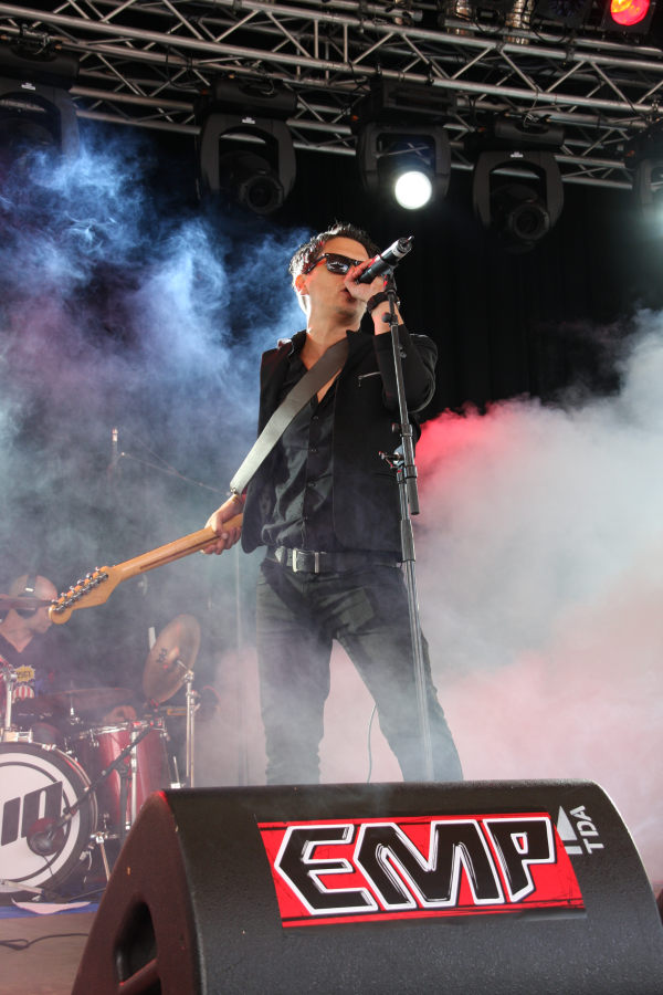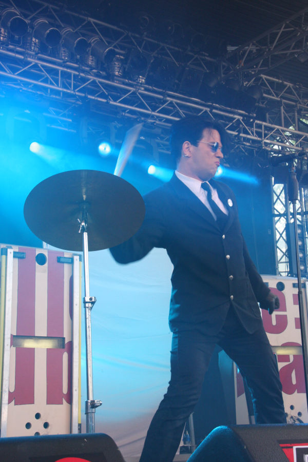 Den musikalischen Auftakt auf der Mainstage bestreitet der Gewinner des in diesem Jahr zum ersten Mal ausgerichteten New Talents-Wettbewerbs und das ist eine Band namens ZIN aus Leipzig. Mit elektronisch angehauchtem Indierock, der ein wenig an Placebo erinnert, gibt man eine ordentliche Visitenkarte ab und besonders der charismatische Frontmann Iven Cole zieht die Blicke des Publikums auf sich. Als nächstes sind die Berliner DIN [A] TOD an der Reihe und gäbe es einen Preis für das ulkigste