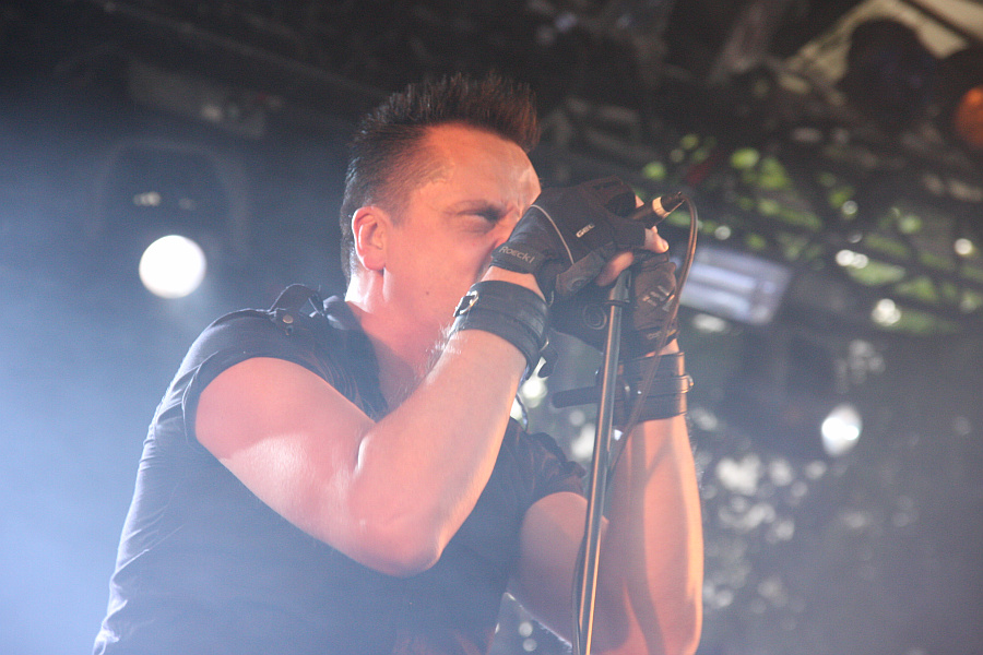 Amphi Festival 2011Da inzwischen aber die Zeit der unschönen Überschneidungen gekommen ist, geht es zeitig ins Staatenhaus, um SUICIDE COMMANDO zu sehen. Die Möglichkeit hatte man in den letzten Jahren desöfteren und so bietet die Show keine Überraschungen. Die altbekannten Videos flimmern über die Leinwand im Hintergrund, Fronter Johan van Roy gibt den manischen Berserker und die Songs sind natürlich über jeglichen Zweifel erhaben. Ohne jetzt respektlos gegenüber anderen Bands des Genres klingen zu wollen, aber an SUICIDE COMMANDO kommt einfach keiner ran. Angefangen beim schleppenden "Severed Head" treibt van Roy danch die Schlagzahl mit "Hate Me" sofort nach oben, stellt fest, dass der Tod jeden Schmerz heilt und skandiert "Dein Herz, meine Gier". Danach sorgt "God Is In The Rain" für melancholische Stimmung, die von "Cause Of Death: Suicide" umgehend zerfetzt wird. Liebend gerne würde man an diesem Ort verbleiben, um die sechs weiteren Songs zu genießen, doch damit liefe man akut Gefahr, den Anfang von DEINE LAKAIEN und zu verpassen. Das will man ja irgendwie auch nicht.
