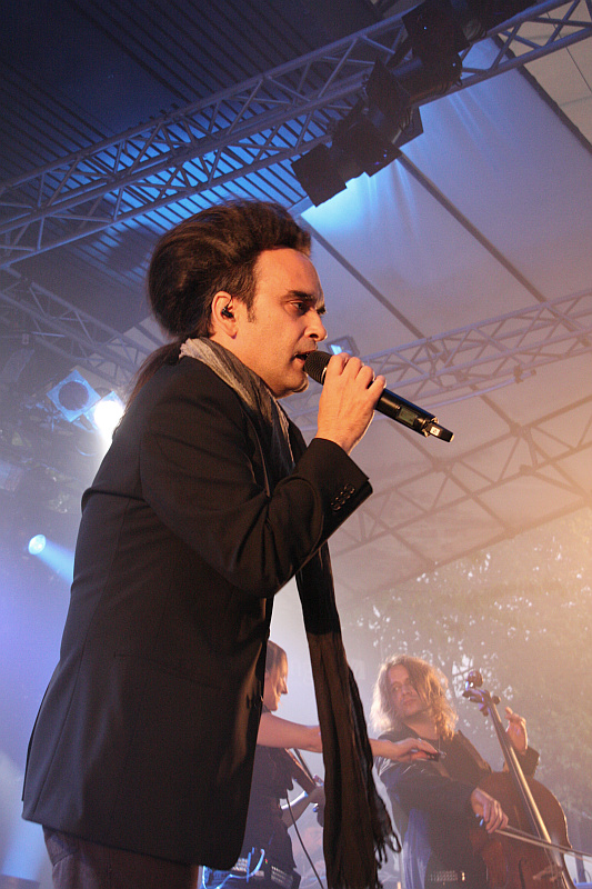 Inzwischen wurde ein riesiger Flügel auf die Bühne gebracht, an dem Ernst Horn Platz nimmt, neben sich ein paar analoge Synthesizer, hinter sich moderneres Equipment. Ebenfalls mit auf der Bühne stehen Geigerin Yvonne "Ivee Leon" Fechner, die Background Vocals beisteuert sowie Cellist Tobias "B. Deutung" Unterberg, die beide rege miteinander interagieren. Das Hauptaugenmerk liegt jedoch, wie nicht anders zu erwarten, Amphi Festival 2011auf dem charismatischen Sänger Alexander Veljanov, der wegen einer Erkältung einen dicken Schal trägt. Seine stimmliche Leistung ist dadurch aber zum Glück nicht beeinträchtigt und auch seine tolle Gestik und Mimik kommen voll zur Geltung. Aufgrund des Regens stehen die Zuschauer dichtgedrängt unter den schützenden Pilzen, die den Platz überspannen und lauschen der Musik eher andächtig, als dass sie ausgelassen feiern. Die Setlist beinhaltet Songs aus allen Phasen der Band und besonders die Darbietungen von "Return" und "Reincarnation" sind ganz großes Gänsehautkino. Zur großen Freude des Schreibers wird im Zugabenblock sogar "Fighting The Green" gespielt, hier merkt man Veljanov die gesundheitliche Beeinträchigung aber ein bisschen an. Zum Abschluss darf natürlich "Love Me To The End" nicht fehlen, da man aber den strikten Curfew von 22 Uhr damit überschreitet, wird die Lautstärke pünktlich heruntergefahren. Ein etwas unwürdiges Ende eines trotzdem sehr sehr schönen Auftritts, nach dem es in viel zu dünner Bekleidung im strömenden Regen zum Bahnhof geht, während im Staatenhaus HOCICO noch zugange sind.