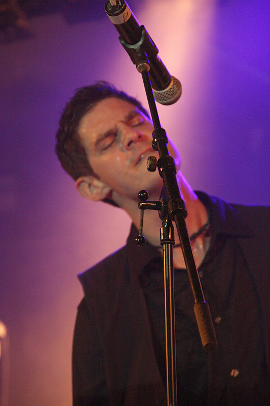 Amphi Festival 2011Klassischer wird es danach mit CLAN OF XYMOX. Die niederländische Dark-Wave-Legende aus den 80ern hat ihren Sound im Laufe der Jahre zwar mit Postpunk, Gothic Rock und vermehrt auch mit mehr Synthie-Elektronik ausgeweitet, auf der Bühne sehen Bandleader Ronny Moorings und der Bass und Gitarre bedienende Aktivposten Mario Usai aber immer noch schön nach den 80ern aus, während Tastenfrau Yvonne de Ray eher rüschig aussieht. Musikalisch gibt es eine Mischung aus alten Klassikern wie "Louise", "Jasmine And Rose", "Stranger", "There's No Tomorrow" und "Farewell" und starken neueren Nummern à la "In Love We Trust", "Hail Mary" und "Emily". Insgesamt eine nette, runde Sache, die zwar nicht gerade für überbordende Begeisterung sorgt, aber irgendwie hübsch ist.