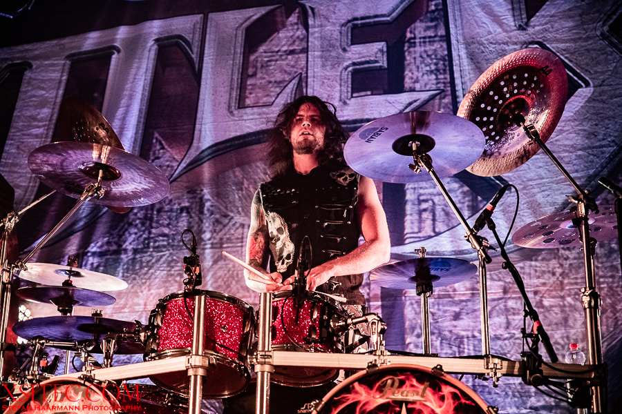 BATTLE BEAST haben sich ihrerseits auch nicht lumpen lassen und eigenes Bühnenlicht mit nach Bochum gebracht. Zusätzlich stehen auf der Bühne farbig illuminierte Nebelfontänen, die der Show zusätzliche Effekte verleihen. Noora Louhimo glänzt mit eindrucksvollem Gesang, der druckvoll und voller stimmlicher Facetten ist. Die Frontlady scheut sich auch nicht, die teilweise schwindelerregenden Tonhöhen, bei der viele ihrer Kolleginnen schlicht passen müssten, auch „Live“ auf die Bühne der Zeche zu bringen.
