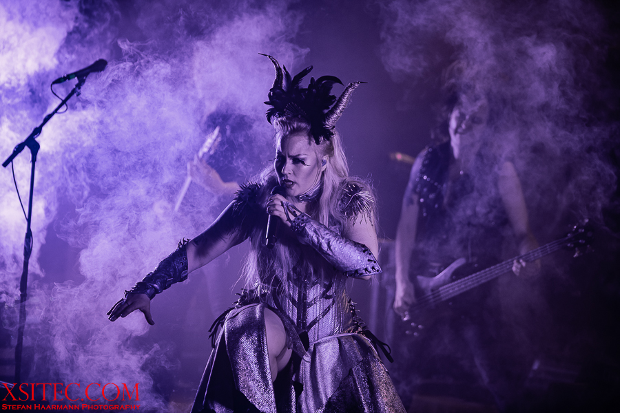 Nach einem Intro, das Drummer Pyry Vikki allein gehört, kommen Noora und ihre Jungs auf die Bühne der Zeche. Routiniert wird das verpatzte Intro zu „Unbroken“ kurzerhand noch einmal neu gestartet und ab diesem Zeitpunkt gibt es kein Halten mehr für die BEASTer, die ab der ersten Minute Vollgas geben, als ob der Leibhaftige selbst hinter ihnen her wäre. Noora, die, wie sie mir im Interview verriet, auf der Bühne immer unter Strom steht, saust von einer Ecke der Bühne zur anderen und hat sichtlich Spaß an ihrem Job.