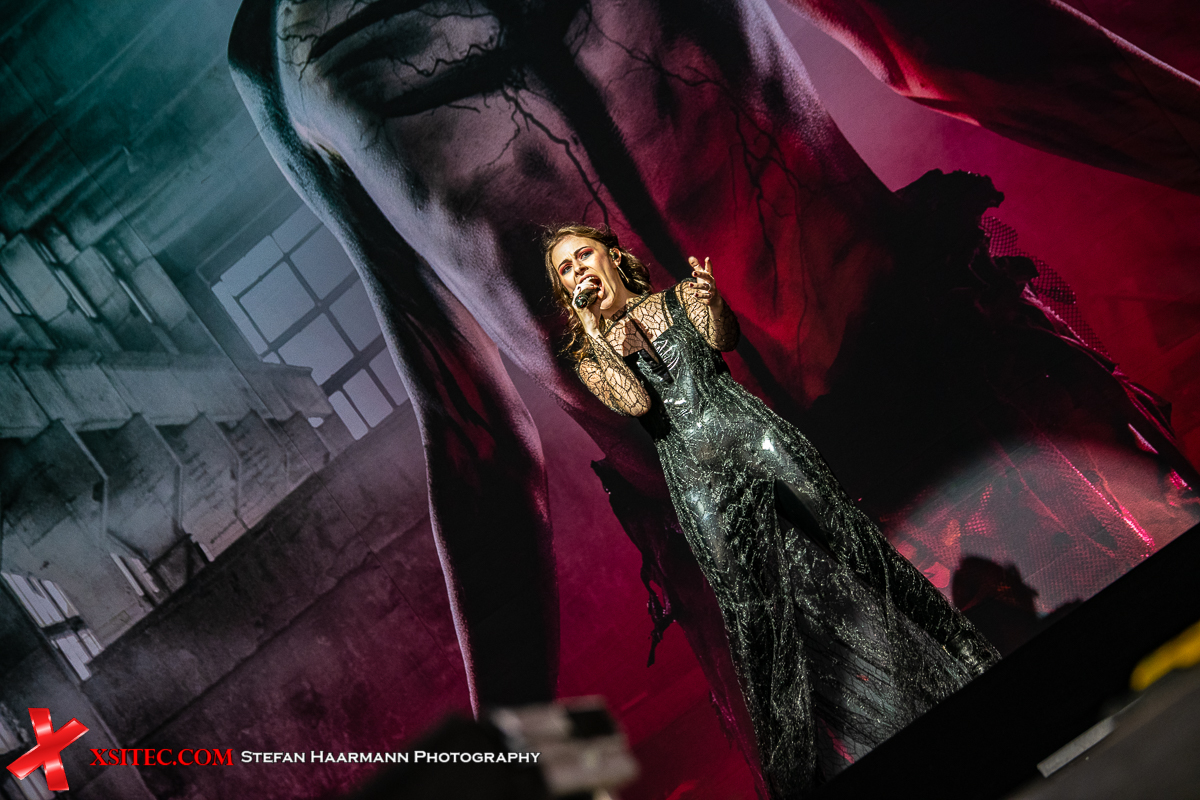 Danach geht es zusammen mit Gitarrist Chris Hermsdörfer ins Cabrio zum Akustik-Teil der Show. „Through The Mirror“, „Misery“ sowie „Songs Of Love And Death“ werden zwischen den Reihen der Zuschauer gespielt und während der Rest der Band sich Backstage erfrischen kann, machen Haben und Hermsdörfer auch ohne jedes Backup eine gute Figur. Zurück auf der Bühne geht es mit „Written In Blood“ wieder metallischer zur Sache, während „Lost In Forever“ vom gleichnamigen 2016 Werk ebenfalls opulent zelebriert wird.