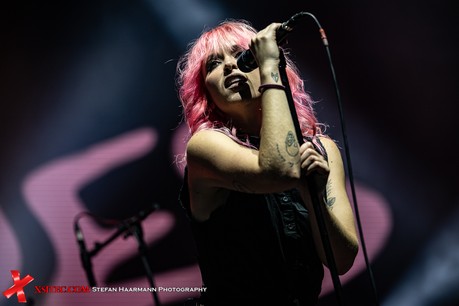 Somit sind die Vorzeichen der „Roadside Tour“ gesetzt, das Konzert am heutigen Abend in der Mitsubishi Electric Halle zu Düsseldorf ist so gut wie ausverkauft und alles ist angerichtet für einen Abend zwischen Welthits und neuem, nachdenklichem Material. Bevor das kongeniale Duo IDOL / STEVENS auf die Bühne kommt, gibt es im Vorprogramm mit den Newcomern THE FOXIES eine Portion gute-Laune-Pop (Eigenwerbung: Glitter Punk), die einfach ansteckend wirkt und das Publikum vor der Bühne direkt für sich gewinnen kann. Das Debüt-Album „Who Are You Now, Who Were You Then“, das seit dem 23. September in den Läden steht, ist somit alles andere als „Overrated“, wie es der Opener des Longplayers vermuten lassen könnte. Zudem ist hier positiv anzumerken, dass die LED Wände, die bereits für BILLY IDOL in Stellung gebracht sind, auch von den FOXIES genutzt werden dürfen, was der Show zusätzlich Glanz verleiht.
