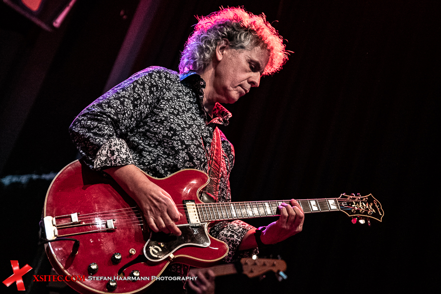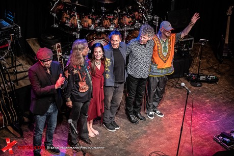 Als Peter Bursch und seine Band wieder die Bühne betreten, brandet sofort Jubel auf, denn auch der zweite Teil der Setlist ist gespickt mit hochkarätigem Material. Nach „Pajaro“ gibt es mit „Sofa-Rock“ ein weiteres Highlight des aktuellen Longplayers, der mit indianisch anmutenden Klängen wiederum Register der Weltmusik zieht, die hier in Duisburg lang anhaltend gefeiert werden, auch weil Frontlady Stella erneut mit Tanzeinlagen glänzt. „Fall Into The Sky“ vom „Indian Camel“-Album imponiert durch laid-back angelegtes Arrangement und schwebend-flirrende Keyboardklänge, die Tom Plötzer immer wieder virtuos einstreut. „Sole Ruler“, ein Blues-Rocker der Extraklasse und „Black Is Your Color“, der an typischen ZZ-TOP Boogie erinnert, liefern weitere Highlights, beide ebenfalls vom neuen Album, wobei insbesondere letzterer vom Publikum euphorisch gefeiert wird. Ein ganz starkes Ding.