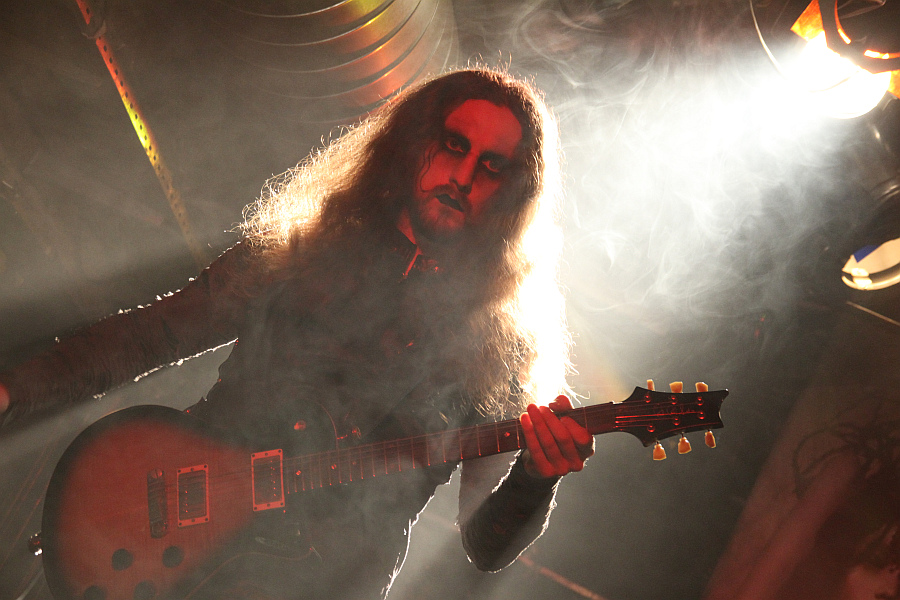 das politisch dem rechten Lager zuzuordnen ist. Tatsächlich aber besteht kein Grund, der Band entsprechende Tendenzen vorzuhalten und ein Label wie Season of Mist, bei dem das Duo inzwischen unter Vertrag steht, wird sich wohl kaum ein faules Ei ins Nest geholt haben. Nichtsdestotrotz gibt es immer noch Leute, die Vorbehalte gegenüber der Band haben. So auch der lokale Veranstalter der Tour in Wien, der möchte ein paar Tage später nicht, dass die Band dort auftritt. Innerhalb der Black-Metal-Szene genießen INQUISITION einen gewissen Kultstatus und so sind nicht wenige der Zuschauer gerade auch wegen dieser Band heute dabei. In musikalischer Hinsicht macht man im Black Metal von INQUISITION gewisse Parallelen zum Sound von IMMORTAL aus, was vor allem am ähnlich klingenen Gekrächz von Frontmann Dagon liegt. Der ist auch der einzige, der vor dem Schlagzeug zu sehen ist, denn auch live tritt man nur mit Gitarre und Schlagzeug auf. Trotzdem gelingt es, einen druckvollen Sound zu produzieren und so ist es recht beeindruckend, was die beiden da abziehen. Zudem ist Dagon ein Meister der großen Pose. Von der gewissen Eintönigkeit, die sich im Verlauf des Sets einstellt, lassen sich die Anhänger der Band natürlich nicht stören und haben Freude an einer ausgewogenen Setlist.