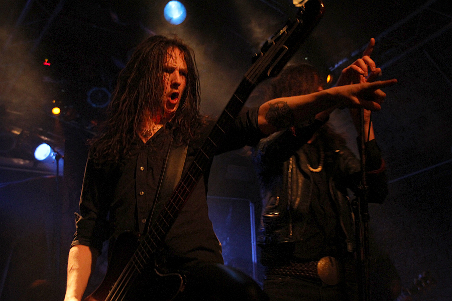 SVARTTJERN sind ein klassischer Vertreter des norwegischen Black Metals und das sowohl in musikalischer, wie auch in optischer Hinsicht. Corpsepaint im Gesicht und auf dem Oberkörper sind bei den Osloern noch immer genauso angesagt, wie die martialischen Nagelarmbänder. Und so grimmig, wie sie aussehen, präsentieren sie sich auch musikalisch. Flirrende Leadgitarren legen einen Teppich aus flächigen Harmonien, auf denen brutal klirrend gerifft wird, das alles im Geschwindigkeitsbereich zwischen treibendem Midtempo und manischer Raserei, begleitet von röchelndem Gekeife. Sonderlich außergewöhnlich ist das nicht, wird von SVARTTJERN aber überzeugend dargeboten. Obwohl die Band mit "Ultimatum Necrophilia" gerade ihr drittes Album veröffentlicht hat, wird daraus nur der Titeltrack dargeboten, die anderen sechs Stücke entstammen den Vorgängeralben. Solider Auftakt in den Konzertabend, an dem es abgesehen von der nicht sehr ausgeprägten Eigenständigkeit kaum etwas zu bemäkeln gibt, denn auch der Sound ist hier passabel.