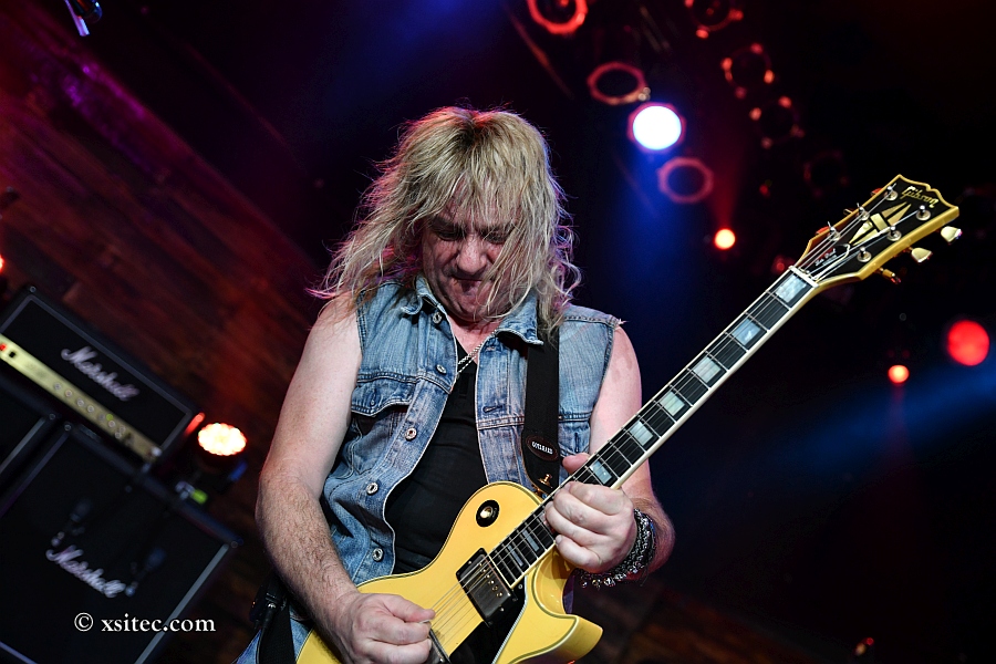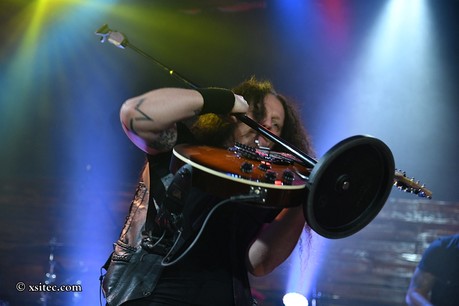 Leo Leoni blüht an seinem angestammten Platz am rechten Bühnenrand regelrecht auf und entlockt seiner Gitarre immer wieder Soli der Extraklasse. Die Band sprüht nur so vor Spielfreude und RONNIE ROMERO stellt eindrucksvoll unter Beweis, einer der besten Sänger im Rock/Metalbereich zu sein. „Firedance“, schon immer einer der beliebtesten GOTTHARD-Titel, liefert die Basis für ein Gitarrenduell zwische Leo und Jgor, das so ausladend angelegt ist, dass Ronnie Romero kurzerhand die Bühne verlässt, um sich auf der Empore unter das Publikum zu mischen und von oben das Geschehen zu kommentieren. Da die beiden Kontrahenten an den Stromgitarren aber noch lange nicht genug haben, muss Romero noch etwas auf seinen erneuten Einsatz warten.