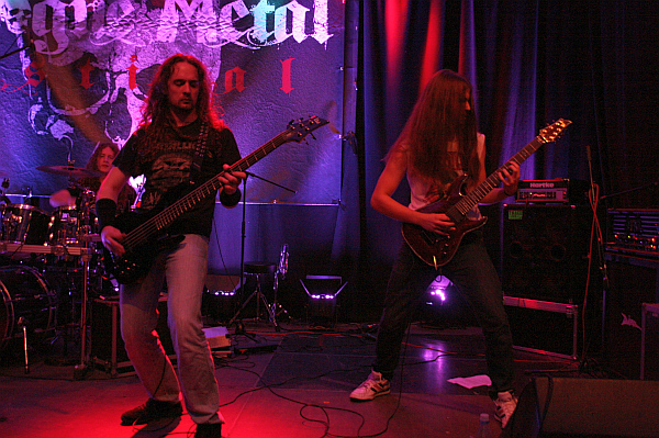 Bei einem so langen Festivaltag gehört nicht nur das Angucken von Bands zum Programm, sondern auch der gepflegte Smalltalk mit anderen Besuchern und Bekannten. Und so vertreibt man sich die nächste Zeit zunächst auf der Terrasse, wo FOOD FOR THE MONKEYS mit netter Akustikmucke die abendliche Stimmung untermalen. Später geht es dann in die Backstage-Katakomben, wo sich CRUD-Basser Damour mit seinem BEASTMILK-Shirt als musikalischer Gourmet entpuppt und man ansonsten eine gute Zeit mit ihm, seinem Bandkumpan Jeno und, dem Frontmann von GUERILLA TREE und seinem Drummer Robert Braune sowie deren Freundinnen (soweit vorhanden und anwesend) und Schwester Krov hat. Das alles hat zur Folge, dass der Auftritt der Power Metaller HADEAN verpasst wird.