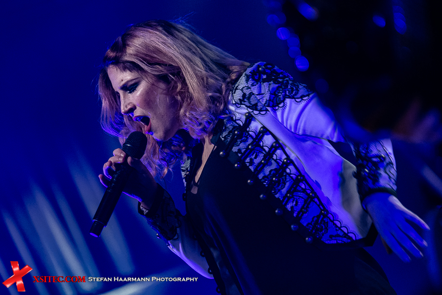Charlotte Wessels, die sich während des Schlagzeug-Gitarren-Duells umgezogen hatte, begeistert mit starkem Gesang und treffsicheren Punches und Kicks, die die großen Ballons zum Ziel haben, die in der Zwischenzeit auf die Fans losgelassen wurden und immer wieder den Weg zurück zur Bühne finden.