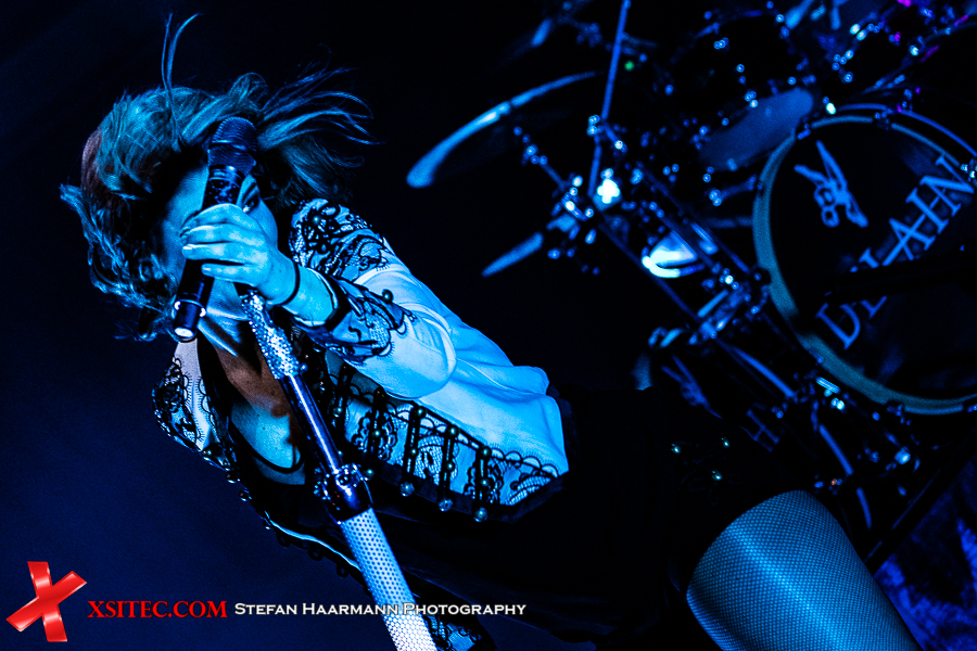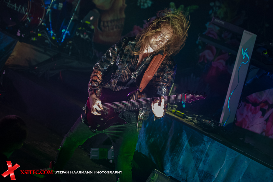 Die Nervosität, die eine Tour und insbesondere ein Tourauftakt mit sich bringt, ist der Band nicht anzumerken. In der Folge geht es mit „Virtue And Vice“ sowie „One Second“ vom in Kürze zu erwartenden, neuen Album, routiniert weiter. Neben dem wabernden Nebel des Grauens zucken immer wieder Blitze der allgegenwärtigen Stroboskope von der Bühne, die die Szenerie teilweise in ein gespenstisches Licht tauchen und die Höchststrafe für alle anwesenden Fotografen bedeuten.