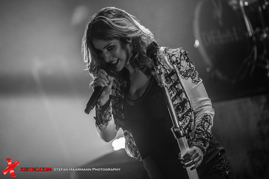 Gleich zu Beginn fällt auf, dass die Band mit Timo Somers nur noch einen Musiker an der Stromgitarre hat. Merel Bechtold, die bisher die zweite Gitarre bediente, ist nicht mehr mit dabei. Das macht sich weniger akustisch als viel mehr optisch bemerkbar, denn der Sound, der schon beim Opener „Pendulum“ aus den Boxen schallt, ist brachial und lässt keine Wünsche offen.