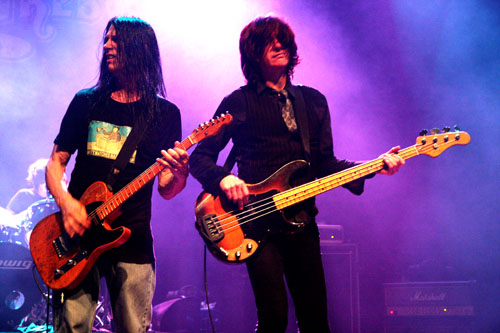 Natürlich spielte man auch die Songs vom aktuellen Album ’rauf und ’runter. Nicht nur „Crooked smile“ erinnerte frappierend an [den rockigen] NEIL YOUNG. Für drei Songs -„Lazy Monday“, „Runnin’ outta time“ und „Two for tuesday“- enterte der QUIREBOYS-Keyboarder Keith Weir die Bühne. Die Gitarrenfront von Dan und Leadgitarrist Warner E. Hodges war allerdings zu übermächtig, so konnte er nur kleine Farbtupfer setzen. Apropos Warner Hodges: Der ehemalige JASON & THE SCORCHERS Axtschwinger war DER Gitarrist des ganzen Abends. Er ließ die unglaublichsten Soli vom Stapel, war ständig an der Bühnenkante zu finden und zu jedem Gag aufgelegt. Der Boogie-Stampfer „Kind hearted woman Blues“ wurde zur aufregenden Spielwiese für Warner Hodges.