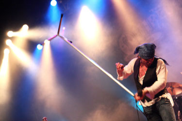 Extrem kurze Umbaupause, denn echte Freunde teilen sich natürlich auch das Equipment. Lediglich Snare, High Hat, Mikros und ein paar weitere Kleinigkeiten wurden ausgetauscht. Die QUIREBOYS legten los wie die sprichwörtliche Feuerwehr. Das musste man den Jungs lassen: Sie spielten das Set mit einer Intensität, als wäre die Hütte ausverkauft gewesen. Leadsänger SPIKE schleuderte den Mikroständer ein ums andere Mal in die Lichtanlage. Leider brachte er diesen Gag etwas zu oft… Furios wie Derwische fegten die beiden Gitarristen Guy Griffin und Paul Guerin über die Bühne. Spike grölte sich in ROD STEWART-Manier durch die Songs und die weiblichen Fans bekamen glänzende Äuglein.