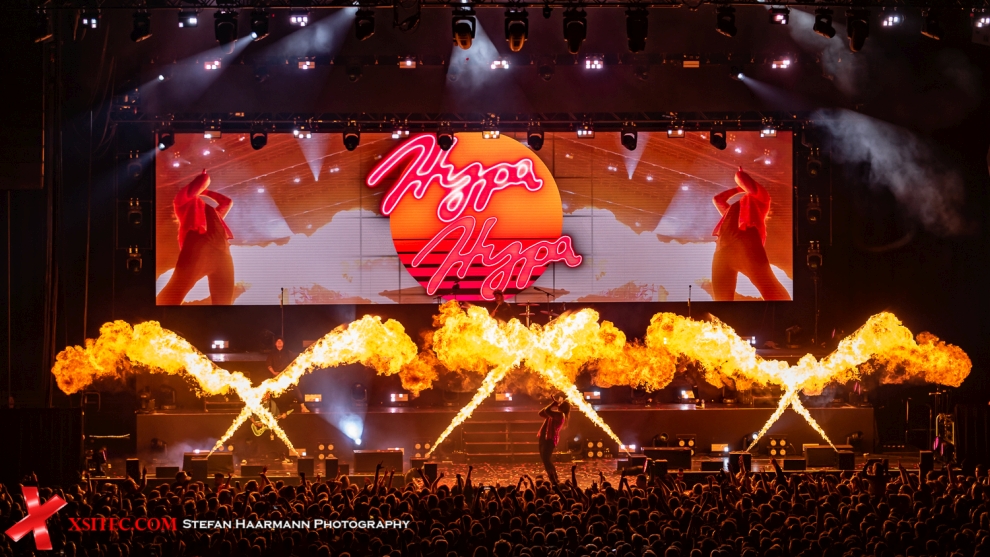 Die Ansagen von Shouter Kevin Ratajczak gehen des Öfteren im Jubel der Menge unter, im Ohr bleibt allerdings die Marschroute des Abends, die da lautet: „Heute wird das Hirn ausgeknipst. Morgen habt ihr frei, also lasst uns heute richtig einen drauf machen“, was an diesem Freitagabend wohl von der überwiegenden Mehrheit des Publikums befolgt wird. ELECTRIC CALLBOY lassen sich zudem auch in Sachen Pyrotechnik nicht lumpen und brennen an diesem Abend nicht nur das sprichwörtliche Feuerwerk ab. Zur Mitte der Show hat Drummer David Friedrich seinen großen Auftritt und hämmert ein mächtiges Solo auf die Felle.