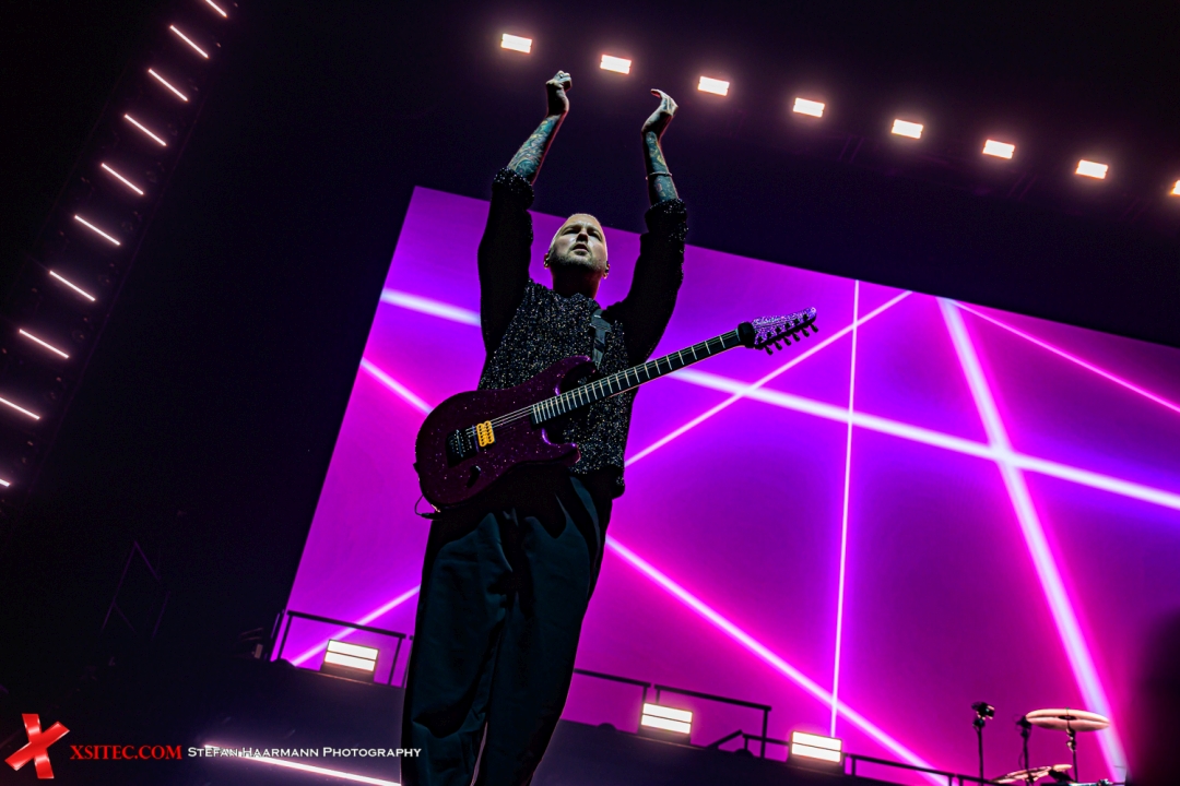 Den musikalischen Anfang machen die Briten von AS EVERYTHING UNFOLDS, die sich nach dem Tod ihres Drummers im August 2024 und der daraufhin zwangsläufigen Neuformierung bestens aufgestellt zeigen und ab der ersten Minute der Show die Halle fest im Griff haben. „Ultraviolet“ oder „On The Inside“ zeigen die Band in toller Spielfreude, was die Hoffnung auf eine baldige Wiederkehr nährt. Nach kurzem Umbau kündigt PRO7-Moderator Sebastian Pufpaff das nächste Highlight an: BAD LOVERZ stehen heute der Legende nach zum ersten mal seit den 1980er Jahren wieder gemeinsam auf der Bühne. Schon der Bühnenaufbau lässt erkennen, dass hier den großen Zeiten des Glamrocks gehuldigt werden soll, Baywatch-Schwimmboje als Requisite inklusive.