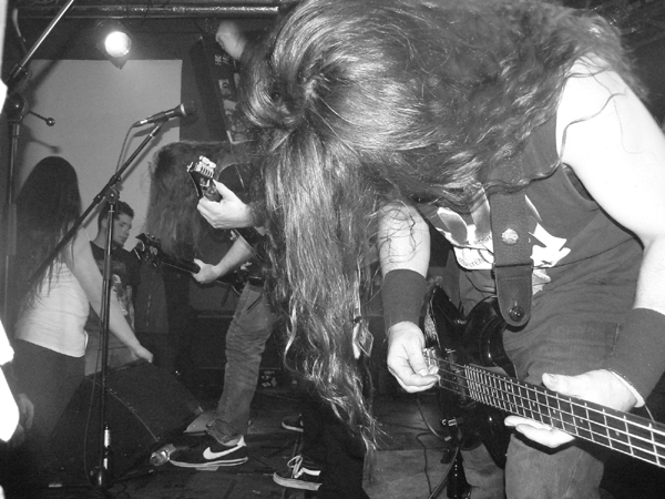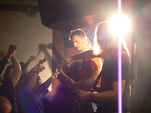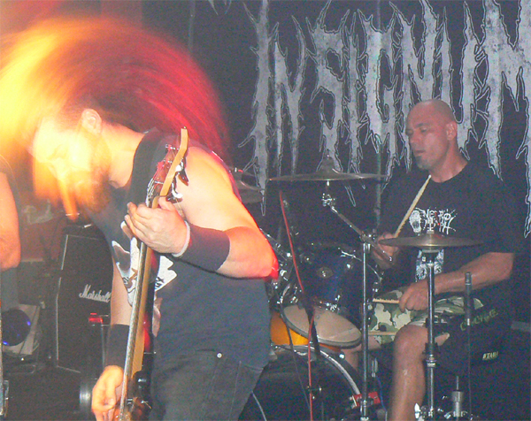 In Signum Hafenklang Hamburg liveDienstag Abend ist ein gutes Stichwort, das Hafenklang zum dankenswerterweise pünktlichen Beginn einigermaßen  gefüllt, die obligatorische Lücke vor der Bühne beim Opener IN SIGNUM aber noch recht deutlich. Das Quartett aus Rotenburg/W. überrascht aber mit einer fetten Mischung aus Grind und Tech-Death, die bei aller Saitenraserei gut reinläuft und Spaß macht. Während der Bass-Mann recht unbeweglich dasteht, geht der Rest der Band gut ab, lässt sich aber leider durch einige Spaßvögel im Publikum mehr als einmal aus dem Konzept bringen. Dem Sänger ein Handy unter die Nase zu halten, auf dem „Der Gesang ist Scheiße“ steht, ist erstens nicht nett und zweitens unzutreffend. IN SIGNUM haben Potential und sollten unbeirrt ihren Weg gehen und vielleicht die lustigen Ansagen lassen. Brutalo-Musik und Witzchen gehen zumindest für mich nicht gut zusammen.