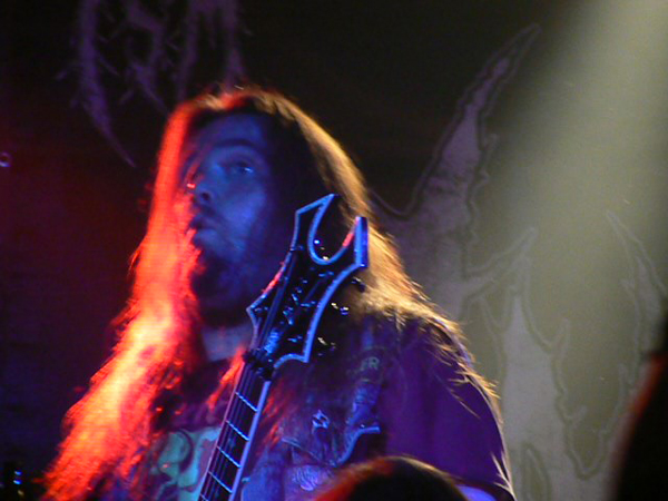 Cephalic Carnage Hafenklang Hamburg 2011 liveWomit wir bei CEPHALIC CARNAGE wären, die mir auf Konserve immer zu stressig und zerfahren sind. „Live geht das besser“, meint HARKONNEN-Sänger Phillip noch zu mir, bevor der optisch recht gemischte Haufen aus Colorado loslegt und Phillip sollte Recht behalten. Sie Zeichen stehen auf Grindcore und Sänger Leonard Leal erklärt auch gleich, warum das so ist: „Als Grindcore-Band kannst du machen, was du willst. Und Spaß haben.“ Das trifft den Nagel auf den Kopf und CEPHALIC CARNAGE hacken sich engagiert durch ein Set, das zwischen allen vorstellbaren Musikrichtungen pendelt, als Basis aber immer wieder zu ultraschnellem Gehacke zurückkehrt. Faszinierend ist nicht nur die Redneck-Frisur von Bassist Nick Schendzielos, sondern auch seine brillante Art den Fretless-Bass zu bearbeiten und nebenbei noch mit geschwollenen Halsvenen tiefe Growls abzuliefern. Amüsant ist am Ende des Sets die Black-Metal-Verarschung inklusive entsprechender Maskierung. Insgesamt präsentieren sich CEPHALIC CARNAGE als unterhaltsame Krachbrüder, die einen ausgeprägten Hang zu illegalen Rauchwaren zu haben scheinen, roch es doch in der Ecke mit den Gitarrenkoffern heftigst nach verbranntem Gras.