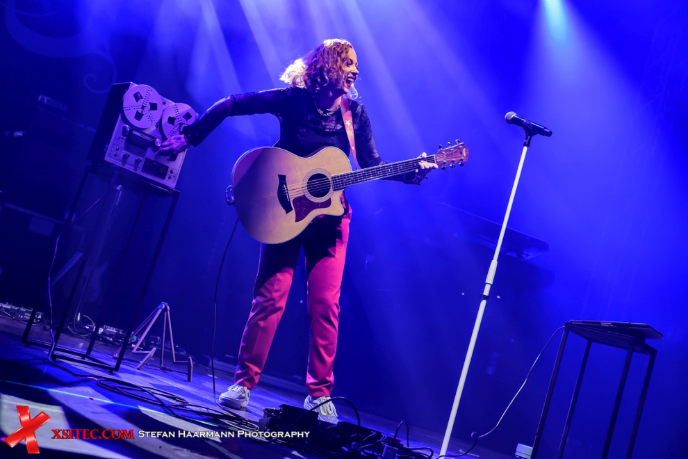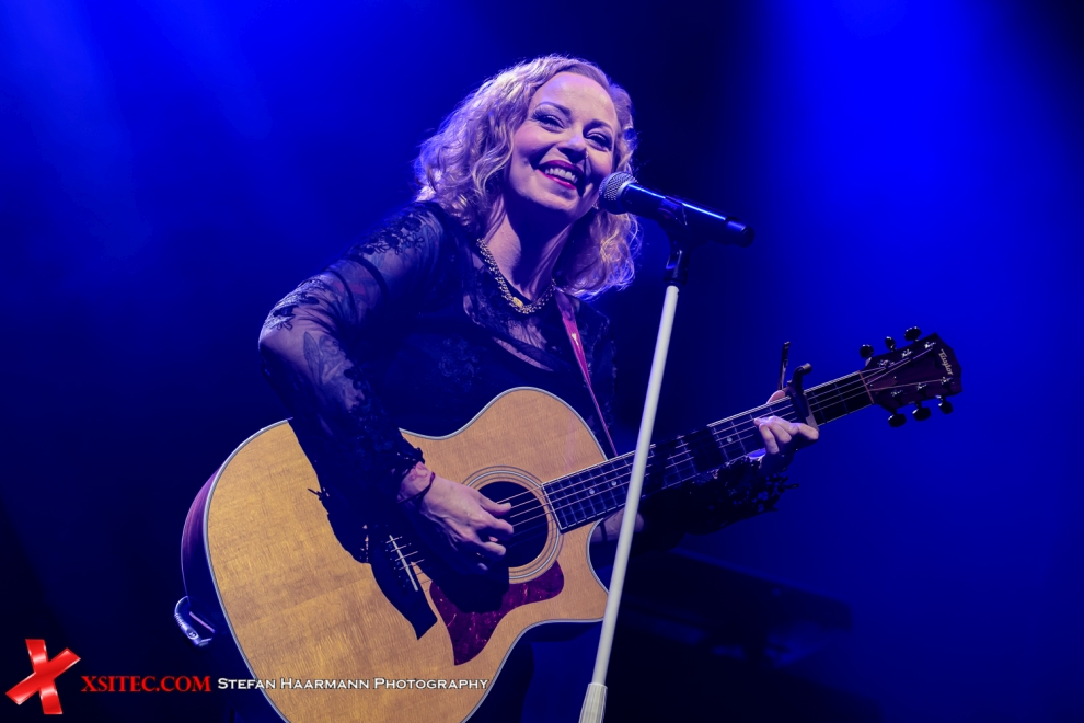 Deshalb passt auch die im Vorprogramm nur mit Akustischer Gitarre bewaffnete ANNEKE VAN GIERSBERGEN perfekt in das Szenario. Die Ex-Frontlady der Prog-Rocker THE GATHERING überzeugt mit feinem Gesang und einer unnachahmlichen Fröhlichkeit, die ansteckend wirkt. Natürlich gibt es mit „Saturnine“ eine Reminiszenz an ihre THE GATHERING Vergangenheit, weit überraschender ist dann aber ihre Version des KATE BUSH-Klassikers „Running Up That Hill“, die in der Turbinenhalle für schiere Begeisterung sorgt. Als ANNEKE VAN GIERSBERGEN nach etwa 35 Minuten ihre Gitarre einpackt, gibt es minutenlangen Applaus für die Sängerin.