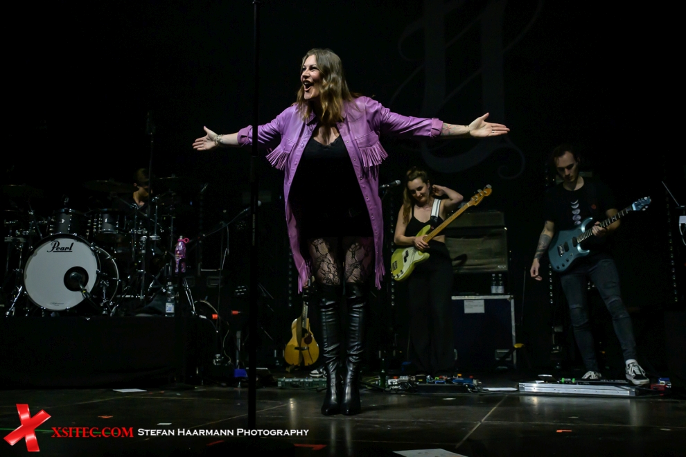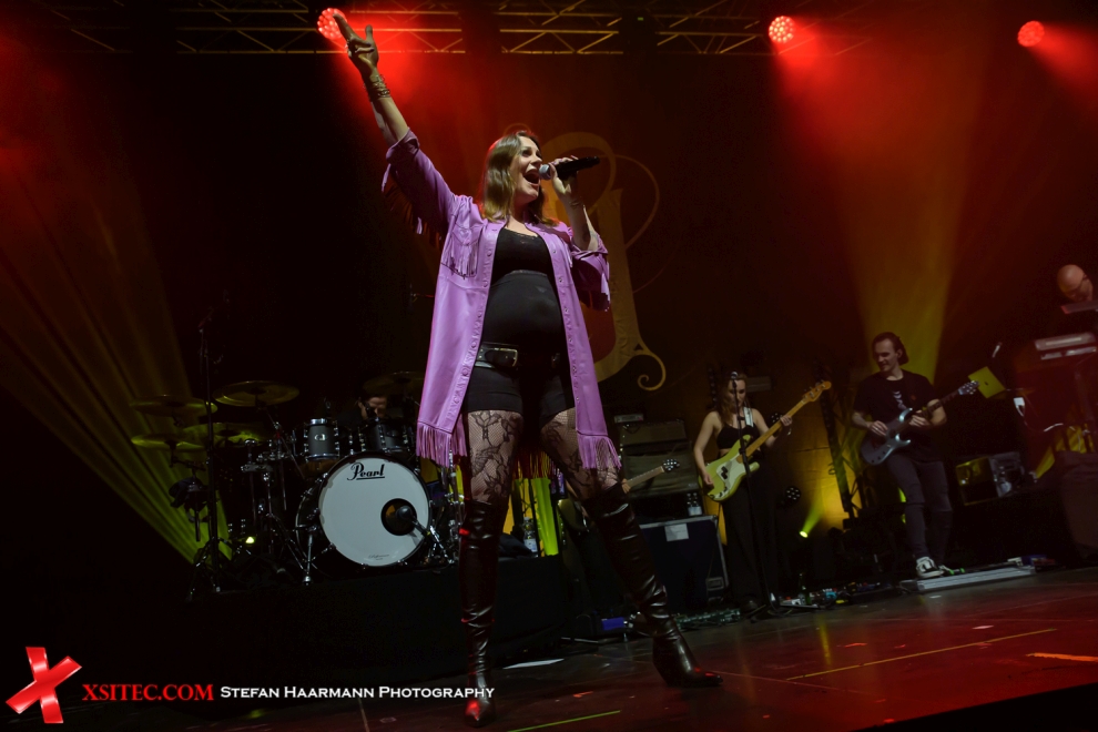 FLOOR JANSEN startet ihre Show mit „Fire“ vom aktuellen Album, gefolgt von „Storm In The Glass“ und „Invincible“. Floor, die in Kürze Mutter werden wird, zeigt sich prächtig gelaunt und präsentiert in der Folgezeit einen bunten Querschnitt durch ihre musikalischen Stationen. Mit „Anfassen“ gibt es ihre Version des JOHANNES OERDING-Songs, den sie bei „Sing Meinen Song“ bereits einem Millionenpublikum vorgestellt hat. Hinzu kommen Songs ihrer ehemaligen Bands AFTER FOREVER und NORTHWARD, die auf der Setlist unverzichtbar sind. Aber auch „Our Decades In The Sun“, ein Titel ihrer aktuellen Band NIGHTWISH, wird in einer tollen Version präsentiert, die von ihrer überaus jungen und ambitionierten Band perfekt umgesetzt wird. Der CLUESO-Titel „Zu schnell vorbei“ kurz vor Ende des Sets beschreibt wohl treffend die Gemütslage aller Anwesenden, denn mit „Come Full Circle“ geht Floor Jansen dann erst einmal von der Bühne, bevor es mit „My Paragon“ und „Daydream“ den perfekt Abschluss eines tollen Konzertabends gibt.