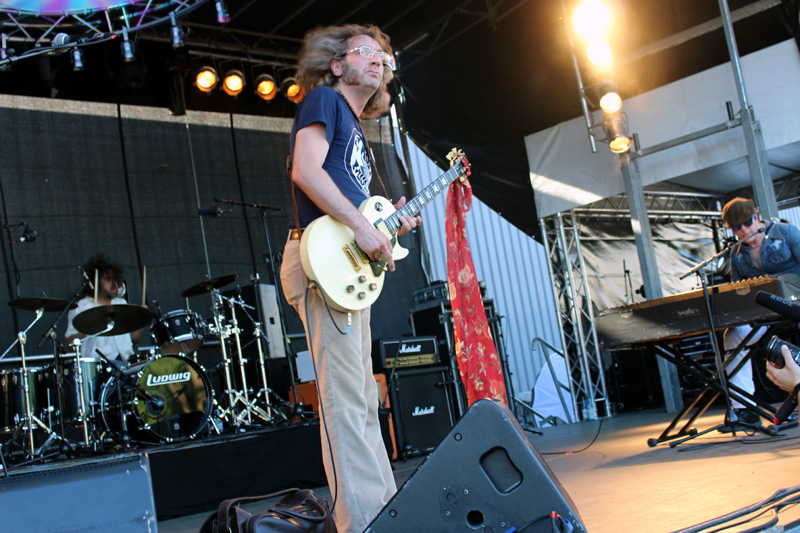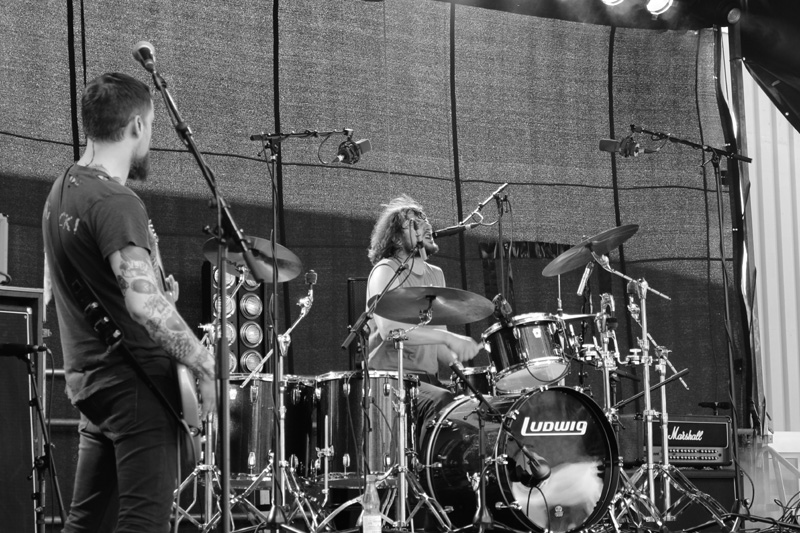 MOUNTAIN WITCH sind vor allem eins: sehr, sehr freundlich. Mit Hexenwerk hat ihr geradliniger Doom Rock dem äußeren Eindruck kaum etwas zu tun, scheinbar gebannt ist jedoch René Sitte an der Gitarre vom bereits großen Publikum und rührt sich kaum von der Stelle. Bassist Tobert Knopp fällt ebenfalls nicht durch übermäßigen Bewegungsdrang auf und lutscht dafür einen Lolli – Stoner Rock auf die sanfte Art halt, gleichwohl herzlich: ein aus Amerika angereister Fan wird persönlich gegrüßt. Wenn die Musik etwas Bergiges an sich hat, dann wohl von einem Hügel mit gut ausgebautem Wanderwegenetz im Sonnenschein: hier gibt es keine Abgründe, keine Gefahren, dafür schöne Landschaften und leichte Anstiege – Zeit für ein Frischgezapftes! Hut ab übrigens vor Schlagzeuger René Roggmann, der größtenteils den Gesang übernimmt und hinterm Drumkit ein eigene Munterkeit versprüht. Im vorderen Programmteil des Festivals ist das Trio somit gut aufgehoben und braucht sich musikalisch nicht zu verstecken, sondern darf ruhig mal an der Bühnenpräsenz schrauben.