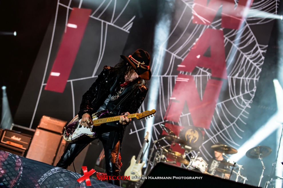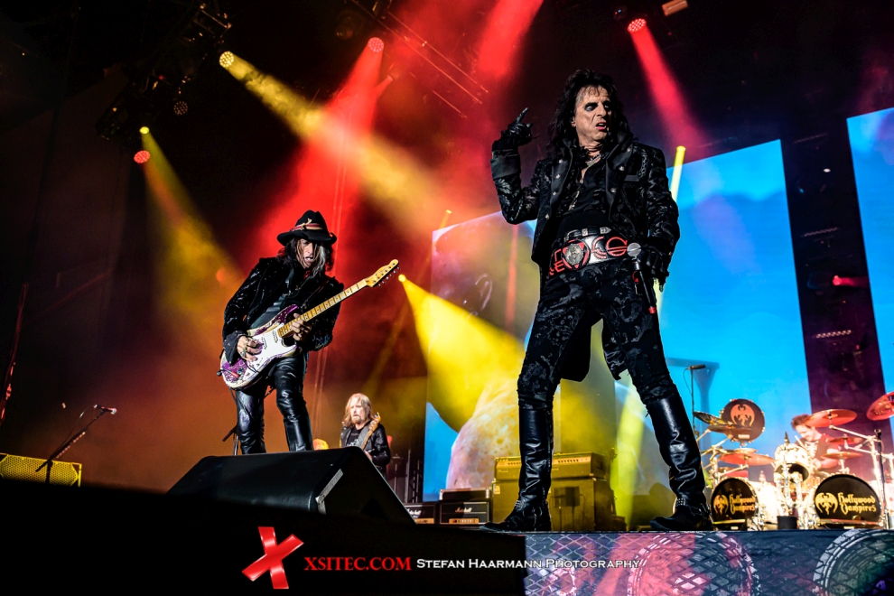 Nach dem Starter „I Want My Now“ ist die Auferstehung der Vampire vollendet: „Raise The Dead“ vom Debütalbum gefällt durch perfekten Sound und passende Bühnenshow, die immer wieder von den LED-Walls per Video-Einspieler unterstützt wird. Hier stimmt auch die Helligkeit, die nicht alles überstrahlt. ALICE COOPER ist sichtlich in seinem Element und zieht die Verfolger auf sich, die er allerdings dann zu seinen Bandkollegen mitnimmt, denen er seinerseits den Platz im Spotlight sichtlich gönnt.