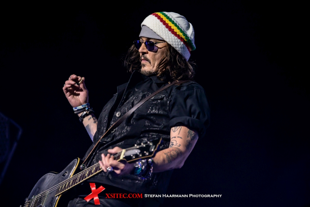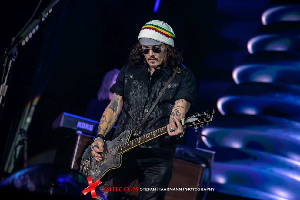 Joe Perry lässt es sich nicht nehmen, seine Fender wie zu besten AEROSMITH-Zeiten zu malträtieren, während Johnny Depp im Laufe des Konzerts sichtlich auftaut, des Öfteren an den Bühnenrand kommt, was die weiblichen Fans mit ohrenbetäubendem Jubel quittieren. Selbst Alice Cooper kann sich in diesen Momenten ein Lächeln nur mühsam verkneifen. Dass der Hollywood-Star nicht nur als Captain Jack Sparrow eine gute Figur macht, beweist er im Laufe des Abends bei verschiedenen Gitarren-Soli und starkem Gesang.