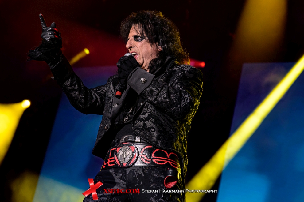 Neben Titeln aus der Feder der Vampire, gibt es immer wieder Cover-Versionen bekannter Rock-Nummern, die in der Halle prächtig abgefeiert werden, so der WHO-Klassiker „Baba O´Reily“ oder die AC/DC-Nummer „The Jack“. ALICE COOPER ist trotz seiner 75 Lenze jederzeit stimmlich auf der Höhe und versprüht den Elan ewiger Jugend. Als weiteres Highlight glänzen die HOLLYWOOD VAMPIRES mit einer tollen Version des David BOWIE-Hits „Heroes“, der der Truppe quasi auf den Leib geschrieben scheint. Aber auch AEROSMITH-Titel sind selbstverständlich auf der Setlist: „Bright Light Fright“ von 1977 oder „Walk This Way“ rocken die Halle so richtig durch und zeigen Joe Perry in Höchstform. Nach „The Train Kept A-Rollin´“ gehen die Vampire zunächst von der Bühne, der Zugabenteil mit dem ALICE COOPER-Hit „School´s Out“ gleicht einem regelrechten Triumphmarsch.