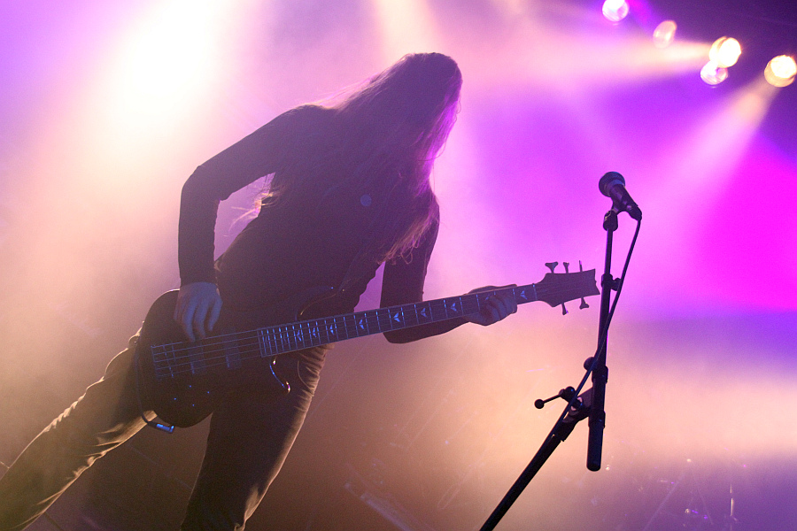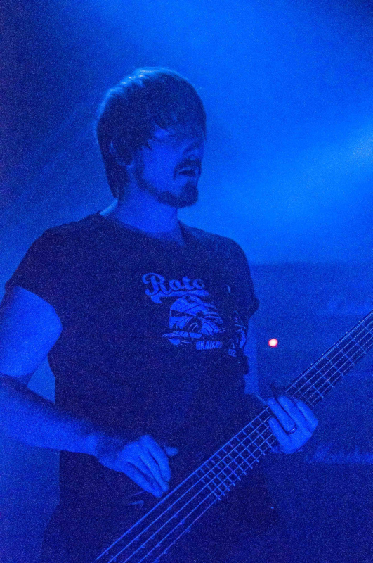 Omega MassifOMEGA MASSIF funktionieren immer und überall, ob sie wie jüngst beim Denovali Swingfest Verstärker zum Abrauchen oder ihren nach Post-Rock-Prinzipien gestrickten Instrumental-Ultra-Doom zur Basis bringen wie heute. Mag sich der eine oder andere zunächst auch befremdet fühlen: Die "Geisterfaust" lässt niemanden kalt, wobei bis auf eine oder zwei Säulen im Programm egal ist, welcher Song gespielt wird. Wie üblich zelebrieren die Würzburger ihren Sound bei minimaler Bühnenausleuchtung und bringen Zwerchfelle zum Zittern, ohne dass sie wie diverse Drone-Hupen aufs Songwriting verzichten würden. Andreas Schmittfull, eklektisch mit Shirt von Chaos Z, bleibt der Bewegungsmittelpunkt der Combo, sodass sich nur der Zuschauer in der Musik der Band verliert, nicht aber diese in der großen Halle.