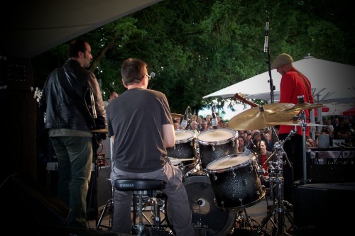 Regen am Sonntagmorgen… im Sommer ist dies ein exzellenter Anlass, gewaltig den Blues zu schieben. Die sonntägliche Blues-Matinee am Saarbrücker Schloss droht dann nämlich, buchstäblich ins Wasser zu fallen. Zwar findet sie trotz allem statt, aber eben im Saal und das ist natürlich erheblich ungeiler. Organisator Claude hatte natürlich wieder einmal das richtige Näschen und die Bühne unter den alten Kastanienbäumen aufbauen lassen, denn pünktlich zum Showbeginn verzog sich der Regen… ja gelegentlich blinzelte gar die Sonne hervor und erwärmte die zahlreichen Zuschauer im bestens gefüllten Schlosspark.