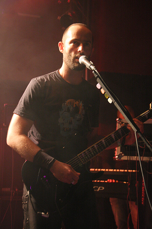 Musikalisch wird nicht sonderlich harter, aber umso spannenderer, sehr atmosphärischer Progressive Rock geboten, bei dem nicht nur die spielerische Darbietung überzeugen kann, sondern auch das Material selber. Selbst wenn man die Band noch nie gehört hat, kann man sich schnell von ihr mitreißen lassen und so fängt man langsam an, den Abend auch zu genießen. Besonders gelungen sind die immer wieder einfließenden folkloristischen Elemente, die ein sehr mediterranes Flair haben und so dafür sorgen, dass man KINGCROW auch als überaus eigenständige Band im Gedächtnis behält. Optischer Blickfang auf der Bühne sind Gitarrist Diego Carfolla und Sänger Diego Marchesi, die mit viel Bewegung bei der Sache sind, Geschmack beweist der Sänger darüberhinaus mit seinem T-Shirt, dessen Motiv sich am Plattencover von JOY DIVISIONs "Unknown Pleasures" orientiert. Letztlich eine überaus gelungene Darbietung einer höchst interessanten Band, deren Name man sich als Liebhaber von kühlem Progrock unbedingt merken sollte.