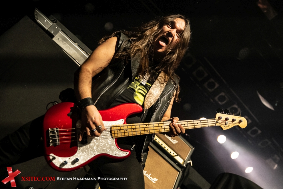 In der Folgezeit beweisen KISSIN´ DYNAMITE, warum die Band zurecht als die beste deutsche Rockband gilt: neben dem starken Songmaterial glänzen Ande Braun und Jim Müller an den Stromgitarren und liefern neben tollen Soli immer wieder auch starkes Posing, das die Zuschauer sichtlich erfreut. Die Rhythmus-Fraktion um Dampfhammer Sebastian Berg und Basser Steffen Haile tut ein Übriges.