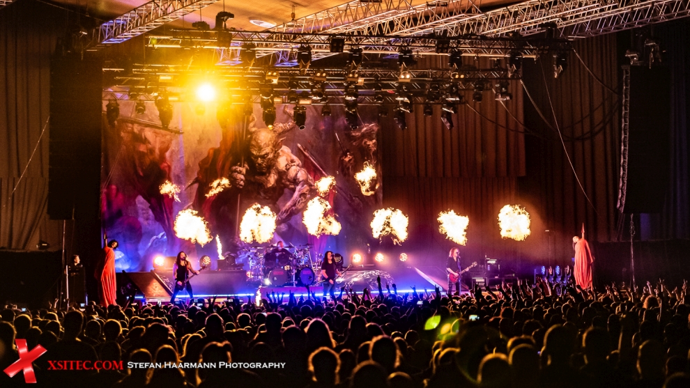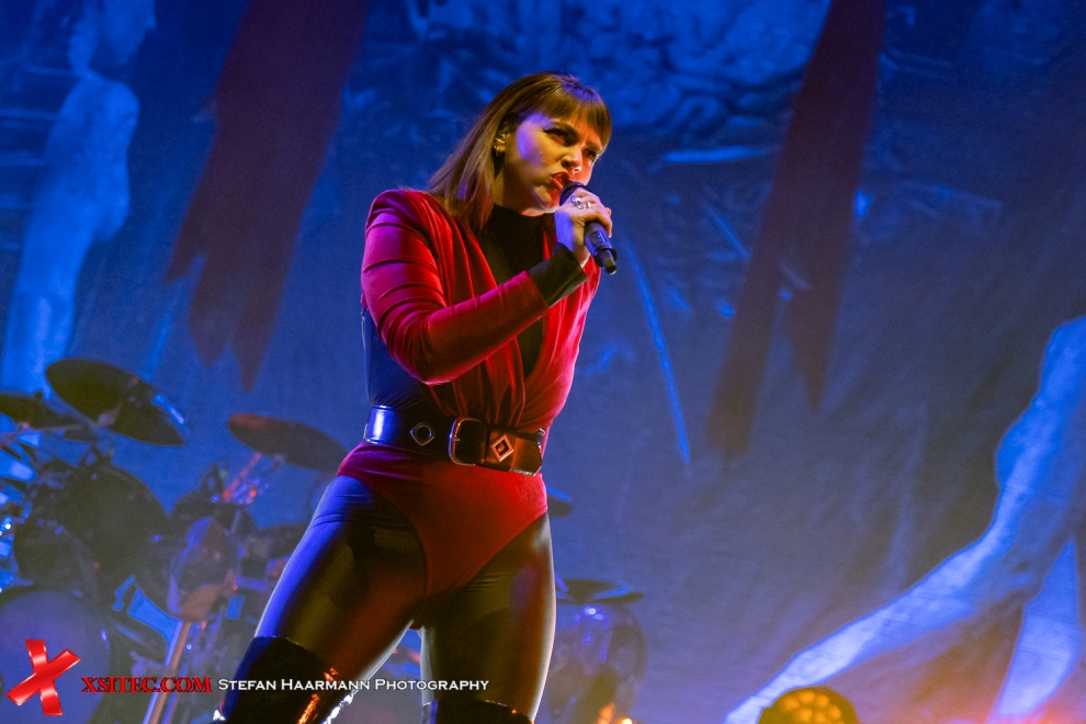 Als die ersten Takte von „Midnight Sun“ aus den Boxen schallen, staunen die Fans nicht schlecht, dass plötzlich Stargast Sofia Portanet neben Mille Petrozza steht und diesem für einen Song die Show stiehlt. Der Bühnengraben ist von wabernden Flammen durchzogen, die für eine entsprechende Atmosphäre sorgen.