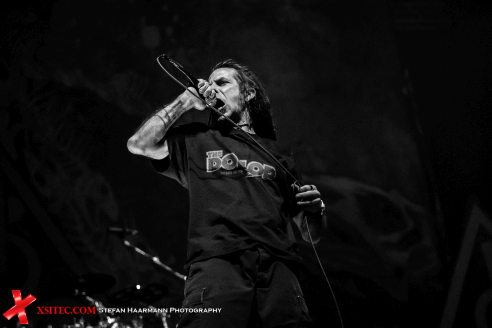 Da passt der Opener „Memento Mori“ ganz ausgezeichnet ins Bild und auch im weiteren Verlauf hämmern LAMB OF GOD den Fans in der Halle einen Querschläger nach dem anderen in die Gehörgänge, was nicht despektierlich gemeint ist, denn LAMB OF GOD waren noch nie dem Mainstream zugetan. Keine leichte Kost also, aber das war den Anwesenden im Vorfeld klar und so rackert die Band vor eingefleischten Fans entsprechen furios und engagiert. Zum Abschluss gibt es mit „Virgil“, „Laid To Rest“ und „Redneck“ ein brachiales Finale, dass perfekt die Bühne für KREATOR bereitet.
