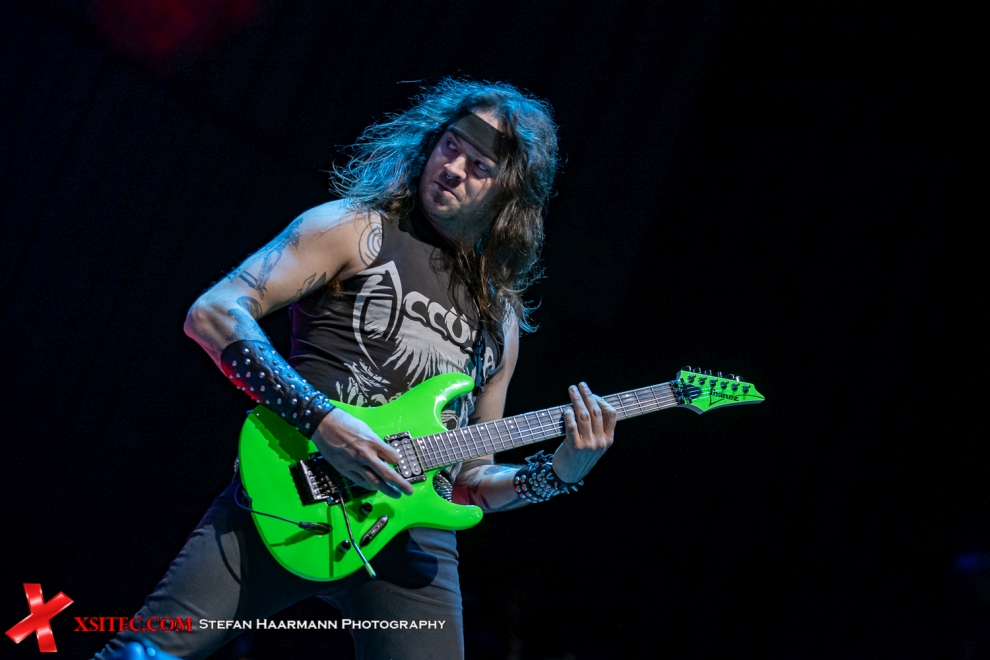 KREATOR starten ihr Heimspiel – wie könnte es anders sein – mit „Hate Über Alles“, würdig in Szene gesetzt durch mächtige Flammensäulen und vielstimmigen Background Chor des Essener Publikums. Mille Petrozza huscht ob des stimmigen Momentums ein Lächeln über das Gesicht, das nicht ganz zur ansonsten gepflegten Bösewicht-Attitüde passen will. Überhaupt geht es an diesem Abend selbst für KREATOR Verhältnisse ungemein aggressive zur Sache, die Motivation, in einer fast ausverkauften Grugahalle ein Heimspiel zelebrieren zu dürfen, verleiht der Band scheinbar Flügel.