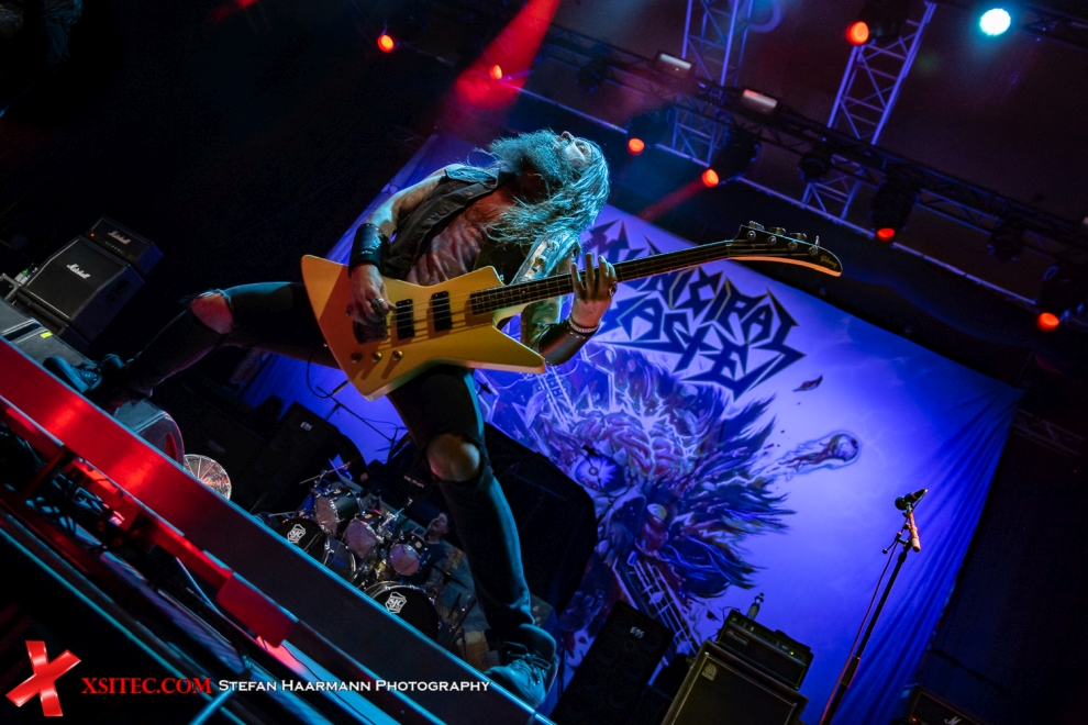 Eröffnet wird der Abend von MUNICIPAL WASTE, die sich Crossover auf die Fahne geschrieben haben. Trotz der noch frühen Stunde ist die Halle bereits gut gefüllt, was den Jungs aus Richmond im US Bundesstaat Virginia ausgesprochen gut gefällt. Sound und Licht sind ausgesprochen gut, was für einen Support nicht immer zu konstatieren ist. Somit gehen MUNICIPAL WASTE nach guten 30 Minuten auch sichtlich zufrieden und gefeiert vom Publikum von der Bühne.