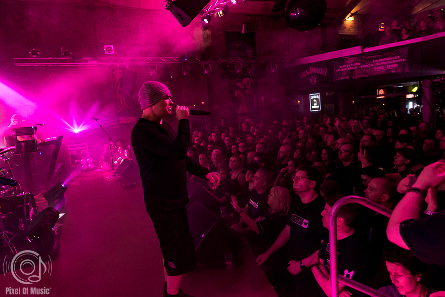 Um 21.15 Uhr betraten dann MESH die Bühne und konnten das Publikum sofort für sich vereinahmen. Mit Stücken wie „Remember Who You Were (Later)“ von „Fragmente 2“ und „Crisis“ vom Album „Original 91 To 93“ kamen die Briten schnell zu ihren Anfängen zurück.