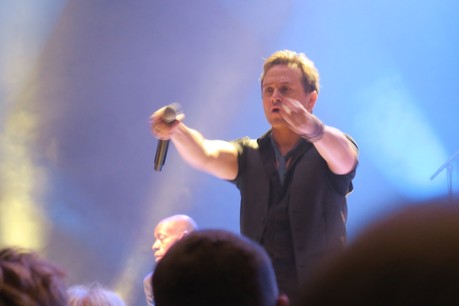 Wer die Hintergründe des gerade erschienenen Albums „Out Of The Blue“ kannte, wusste, was ihn erwartet, denn auf der LP bzw. der Deluxe-CD wurden die alten Klassiker von MIKE + THE MECHANICS mit den beiden neuen Sängern Andrew Roachford und Tim Howar, die nach dem Tod von PAUL YOUNG und dem Weggang von PAUL CARRACK an deren Stelle getreten waren, eingespielt sowie mit drei völlig neuen Songs versehen. Die Deluxe-Variante erhielt noch dazu von sechs alten Songs neue Akustik-Versionen. All das gab es nun live auch zu hören – und versetzte das Dresdener Publikum in die pure Begeisterung, die sich leider im Verhältnis zu dem feinen Saal nicht in den Grenzen bewegte, dass diejenigen, die eine ganze Menge Geld für gute Plätze ausgegeben hatten, um dieses Konzert sitzend und sehend sowie hörend zu genießen, diesen Genuss ausleben durften.