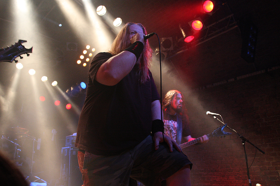 Testaments Chuck Billy, sein kehliger Gesang erinnert dagegen ein wenig an Obituary. Mit seiner Schirmmütze und dem Bass in Lemmy-Optik stiehlt ihm Tieftöner Thomas Lendzian aber sogar noch die Show. Die Band hat sichtlich Spaß an ihrem Auftritt, was sich allerdings nicht so recht auf das Publikum überträgt, dem der Sound wohl nicht straight genug ist. Nach neun Songs verabschieden sich die Dorstener und machen die Bühne für DEATHFIST frei.