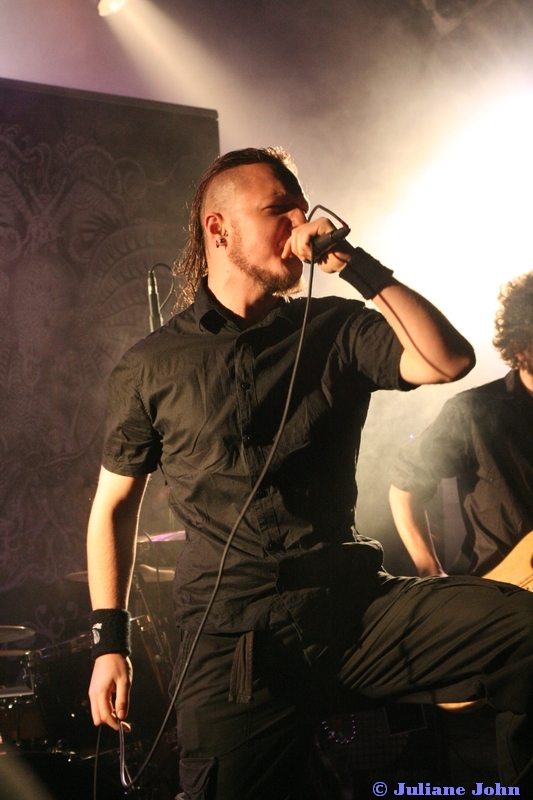 Ein nicht geringer Teil des Publikums ist sicherlich auch wegen CYNIC in die Markthalle gepilgert. In zwanzig Jahren Bandgeschichte hat es diese Band auf gerade mal zwei Studioalben gebracht, wobei Album Nummer zwei erst anno 2008 nach der von vielen herbeigesehnten Reunion der Florida-Jungs erschien. Trotz mangelnder Produktivität haben CYNIC einen legendären Status in der Szene erlangt, auch wenn ihr aktuelles Werk „Traced In Air“ den Death-Metal-Wurzeln ein wenig den Rücken zugekehrt hat. Rhythmisch komplex und mit krummen Takten vor wunderschönen Melodien strotzend, ergießt sich der Sound dieser vier Wundermänner ins Publikum, während sich Paul Masvidals fremdartiger, verfremdeter Klargesang, begleitet von heiseren Growls, wie Balsam über das polyrhythmische Brodeln der Instrumente legt. Ein wunderbarer Auftritt einer wunderbaren Band!