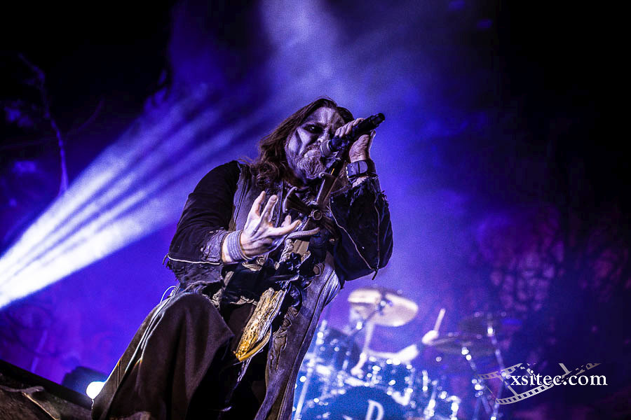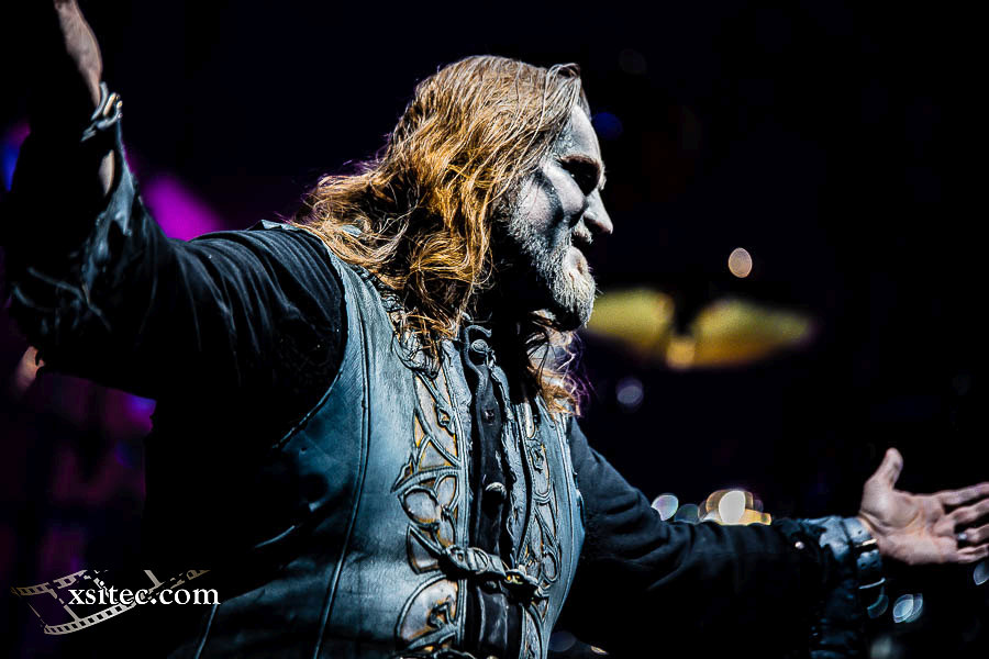 Nun aber ist es es an der Zeit, die Wölfe auf die Halle loszulassen. Nach einer Umbaupause, in der die Bühne komplett mit Treppenkonstruktionen, Pyrotechnik und epischen Kulissen ausstaffiert wird, wird es nach dem Intro „Lupus Daemonis“ heiß, denn die Bühne wird von einem Feuerarrangement illuminiert und ATTILA DORN, Oberwolf mit klassischer Gesangsausbildung, zückt im Laufe des Openers „Fire And Forgive“ zwei Flammenwerfer, ein grandioser Eyecatcher, der in Düsseldorf entsprechend gefeiert wird.