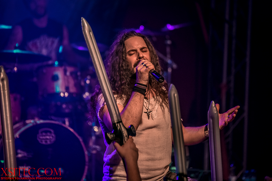 Giacomo Voli, der durch seine ungemein sympathische Bühnenpräsenz das Publikum direkt auf seiner Seite hat, füllt die nach dem Abgang des langjährigen Frontmanns Fabio Lione entstandene Lücke am Mikrofon perfekt aus. Spätestens mit „March Against The Tyrant“ vom aktuellen Album „The Eighth Mountain“ ist die Partystimmung im Turock auf dem Höhepunkt, denn die erste Reihe zückt, sehr zur Freude von Violi und seinen Mitstreitern, fast geschlossen Gummischwerter und orchestriert den Song mit entsprechender Choreografie. Mit „The Wind, The Rain And The Moon“ folgt dann die einzige Ballade das Abends, die für Gänsehaut sorgt und verdeutlicht, wie stark das aktuelle Album geworden ist. Ein absolutes Highlight an diesem Abend.