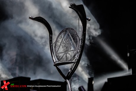 BEHEMOTH sind nicht erst seit diesem Jahr eine feste Größe im Metalzirkus, das dichte Gedränge vor der ALTERNA-Stage spricht Bände. Zum Intro vom Tape gibt es reichlich Nebel und immer wieder Feuer aus den Flammenwerfern, die entlang des Bühnenrandes aufgefahren sind. Vorbeter Nergal erscheint mit Maske hinter seinem Mikrofon, seine Bandkollegen blicken auch ohne selbige finster genug drein.