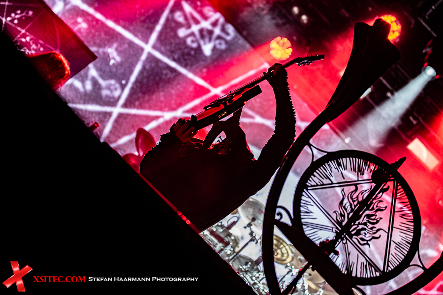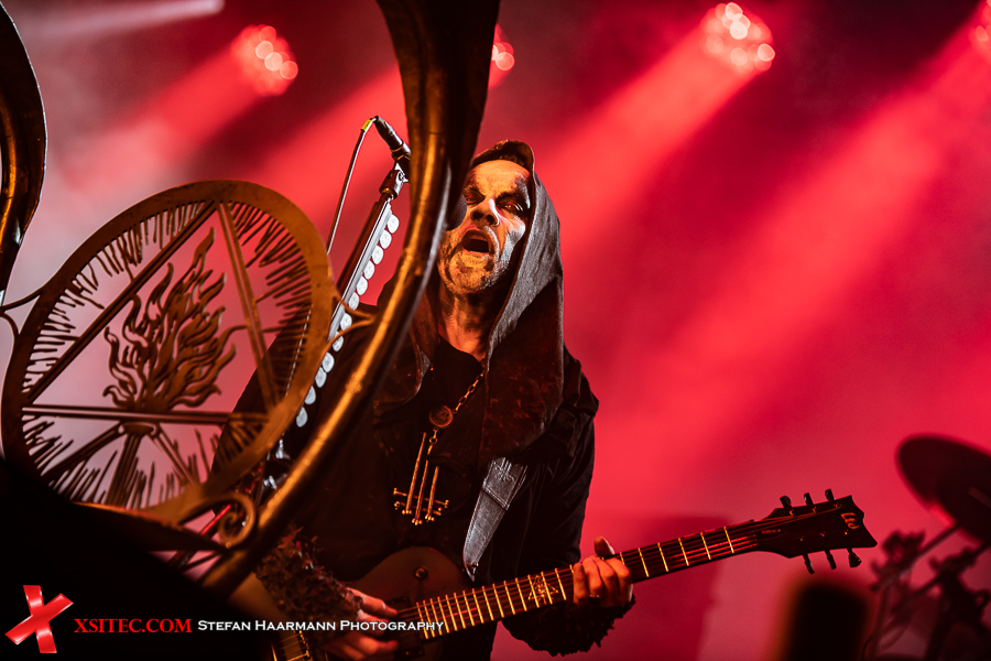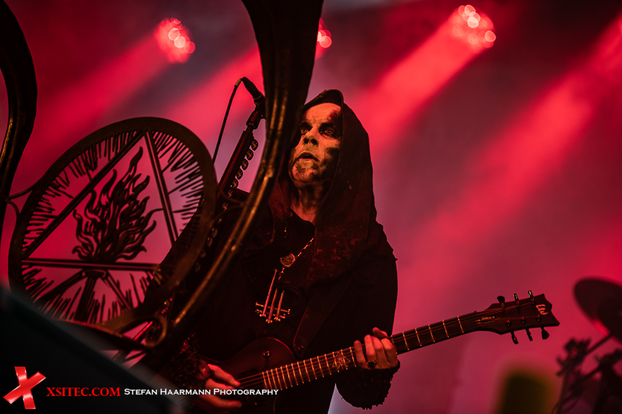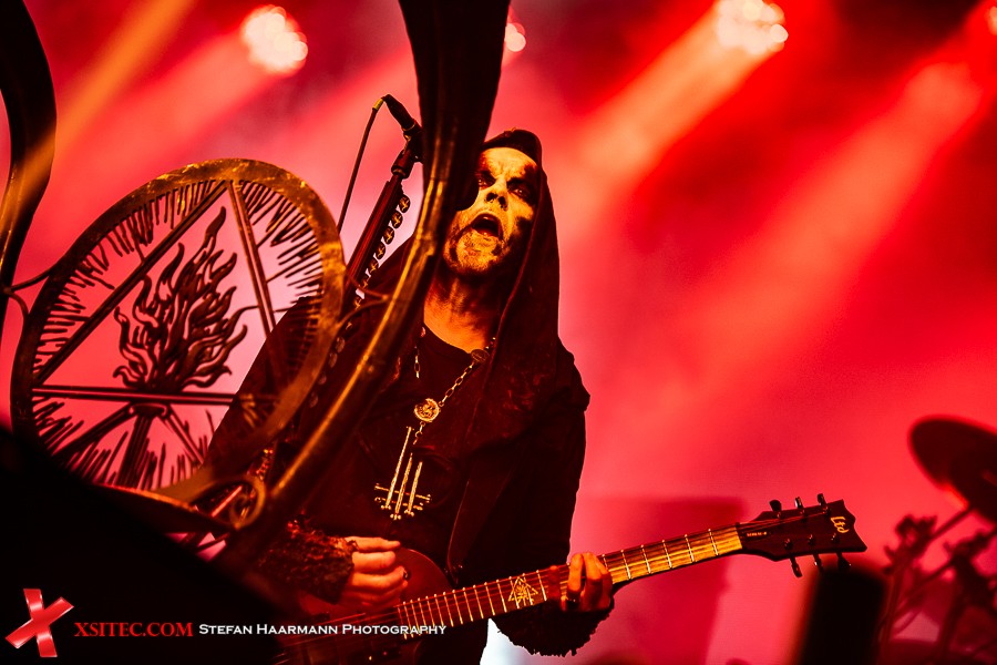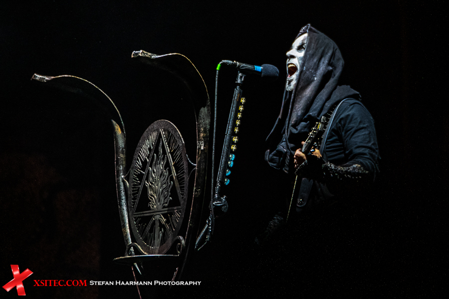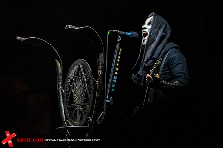 >Der Gig nimmt spätestens mit „Ov Fire And The Void“ deutlich an Fahrt auf und während der Wind noch an Intensität zunimmt, lassen sich Darski & Co. nicht lumpen, sondern trotzen den gewaltigen Windstößen und den Naturgewalten mit hämmernden Beats und fulminanter Show. Die Truppe scheint von den widrigen Wetterbedingungen noch zusätzlich motiviert worden zu sein, denn die brachialen Songs werden immer wieder durch martialische Grimassen untermalt, die im Schein der Flammen gespenstisch wirken, was sicherlich beabsichtigt ist.