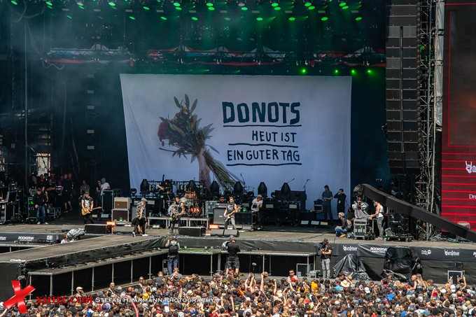 Die Ehre, das Festival zu eröffnen, haben die DONOTS, deren Abriss-Show wieder einmal prächtig ankommt und zur Mitte des Sets eine faustdicke Überraschung für den Ring bereithält: Neben den Ibbenbürenern bevölkern plötzlich DIE TOTEN HOSEN die UTOPIA-Stage, die in gewohnter Manier „Hier kommt Alex“, „Tage wie diese“ und „Schrei nach Liebe“ als Cover-Version der ÄRZTE abliefern. Großes Kino und ein Mega-Paukenschlag zum Auftakt.