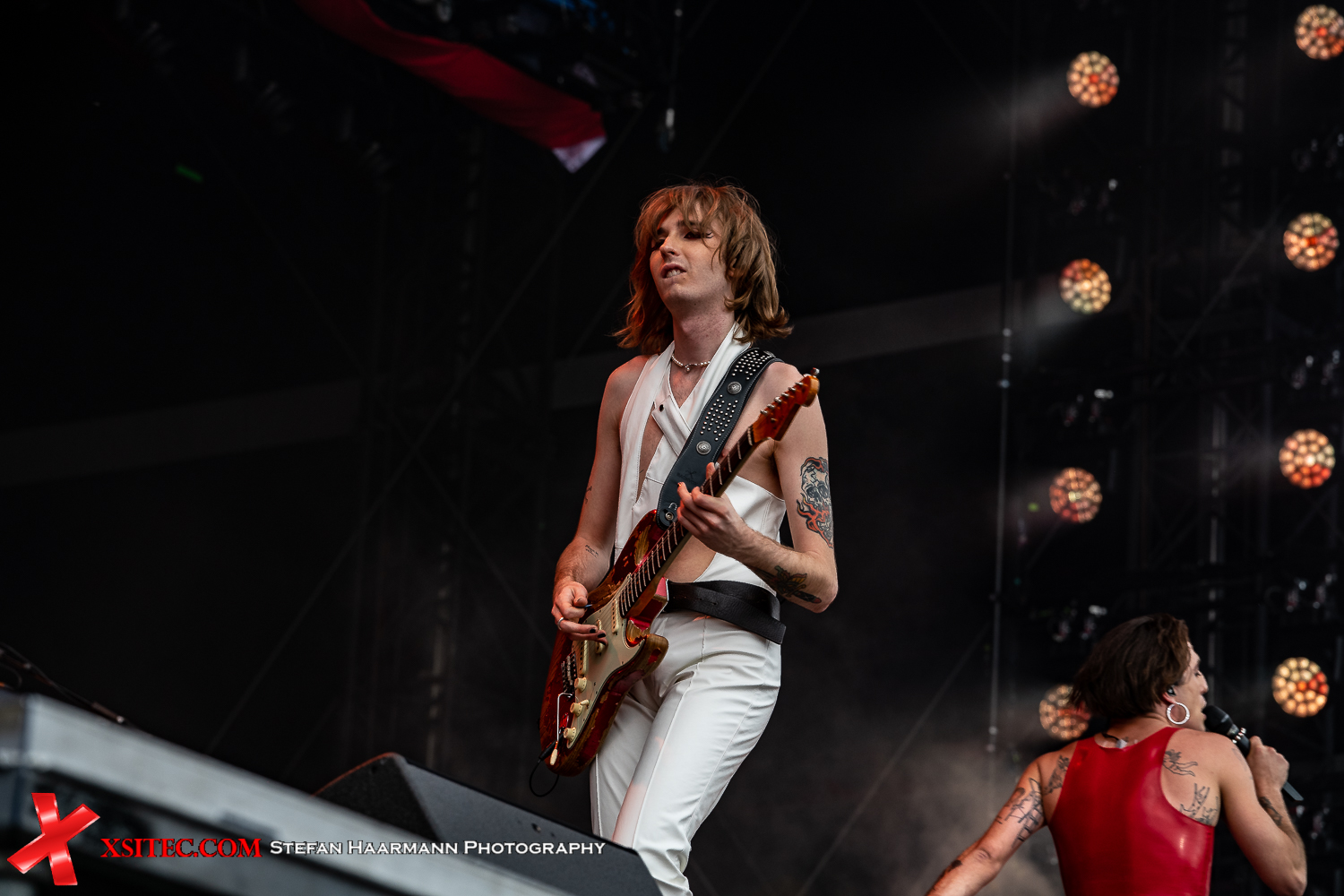Während im Media-Center bereits die Nachricht durchsickert, dass bei GREEN DAY am späten Abend keine Fotografen zugelassen sind, schicken sich die Römer von MÅNESKIN an, kurzerhand den Headliner-Slot für sich zu beanspruchen. Der Name MÅNESKIN stammt im Übrigen aus dem Dänischen und bedeutet Mondschein, was eine Reminiszenz an die Dänischen Wurzeln von Frontmann Damiano David darstellt. Die Band, die 2021 den Eurovision Song Contest für sich entscheiden konnte, liefert beste Unterhaltung voller Energie, die hier am Ring vor der UTOPIA-Stage für ausgelassene Party-Stimmung sorgt. So sieht das aus, wenn eine Band erfolgshungrig aus der Garderobe kommt. Nicht nur für mich das Highlight des ersten Tages.
