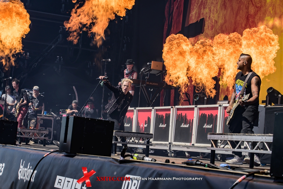Auch der dritte Tag des traditionsreichsten, deutschen Rockfestivals glänzt mit Top-Acts. Dazu strahlt die Sonne mit den Ringrockern ohne Unterlass um die Wette und sorgt für perfekte Rahmenbedingungen. Ihrem Namen alle Ehre machen zum Auftakt auf der UTOPIA-Stage die Männer von BOYSETSFIRE, die ab der ersten Sekunde ihre Version des Post-Hardcore unter die Leute bringen, dass es nur so scheppert. Die teilweise zuckersüßen Hooks werden immer wieder durch mächtige Screamo-Parts aufgebrochen, was dem Ganzen die nötige Würze gibt. Nach diesem tollen Auftakt geht es im Anschluss mit SUM 41 weiter, die es sich nicht nehmen lassen, die Schlagzahl auf der UTOPIA nochmals zu erhöhen. Deryck Whibley zeigt sich bestens gelaunt und feuert die Fans vor der Bühne an, die Songs mitzusingen, was diese sich nicht zweimal sagen lassen und vielstimmig die Hits der Band intonieren. „Walking Desaster“, „In Too Deep, „Fat Lip“ oder „Pieces“ haben in all den Jahren nichts an Zugkraft eingebüßt und wer die Band aus dem kanadischen Ajax bisher nicht auf dem Zettel hatte, sieht sich in Anbetracht dieses starken Auftritts genötigt, Verpasstes nachzuholen.