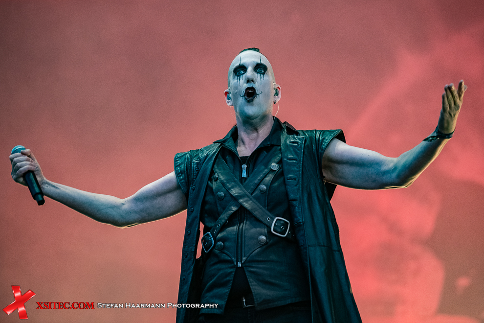 Etwas gemäßigter geht es dann bei PADDY AND THE RATS zu, deren humoriger Folk Rock eigentlich besser zu späterer Stunde gepasst hätte und mit Sicherheit einen späteren Slot verdient gehabt hätte. Kurz darauf fließt dann bei OST+FRONT das Theaterblut in Strömen. Die Berliner haben hier quasi ein Heimspiel und neben den vielen Crowdsurfern während des Gigs zeigt insbesondere der Andrang im Infield den Stellenwert der Band auf. Dass die Show zudem selbst für NDH- Verhältnisse außergewöhnlich ist, tut ein Übriges.