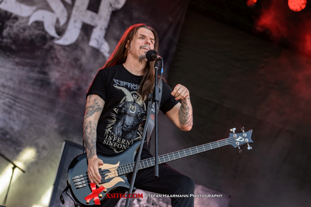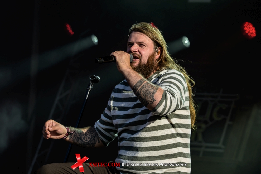 Auf der DARK-Stage wir es danach noch etwas heißer, denn hier haben sich die BURNING WITCHES angesagt, die mit klassischem Heavy Metal den Fans einheizen. Das aktuelle Album „The Dark Tower“ kommt dabei ebenso gut an, wie die arrivierten Titel der Hexen. Nur gut, dass die Grabenschlampen auch an diesem Tag per Feuerwehrschlauch für Erfrischung des Publikums sorgen. Danach gibt es „Tales From The North“ mit BLOODBOUND, deren neues Album am heutigen Tag Premiere hat. Die Schweden zelebrieren einen denkwürdigen Gig, der für mächtig Stimmung sorgt. SEPTICFLESH direkt danach hatten auf ihrem Flug Probleme mit ihrem Gepäck, weswegen die Band mit geborgten Instrumenten und ohne ihre Maskerade auf die ROCKHARZ-Bühne muss. Dass dies in Anbetracht der immer noch mörderischen Temperaturen für die Symphonic-Death-Metaller auch Vorteile bringt, lässt sich nicht von der Hand weisen, der Stimmung ist das ungewohnte Outfit der Band nicht abträglich und so gibt es nach dem Rausschmeißer „Dark Art“ einen Orkan an Ovationen.